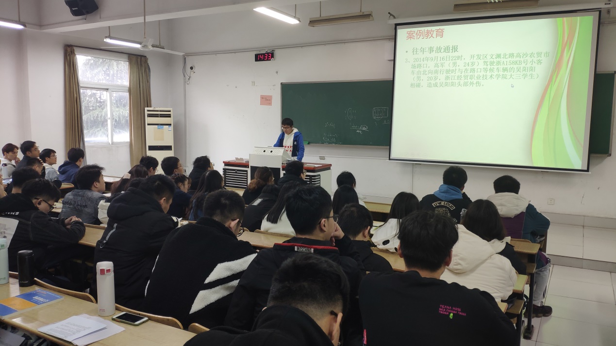 会议伊始,许琳老师向同学们简要介绍了在考试中违规的相关处罚,提醒同学们不要存在侥幸心理,要严格约束自己,遵守校纪班规,不要触碰高压线,告诫同学们应诚信应考,杜绝作弊行为。随后,测绘1803班班长马庆华为同学们讲解了大学生校园交通安全的相关知识。马庆华同学以近期发生在我校的一起严重交通事故和发生在自身的真实案例来提醒同学们危险随时随地都可能发生,同学们应该时刻注意自身安全。接着他就同学们日常出行乘坐交通工具、放假回家、在校内步行等方面给同学们提出切实有用的建议。