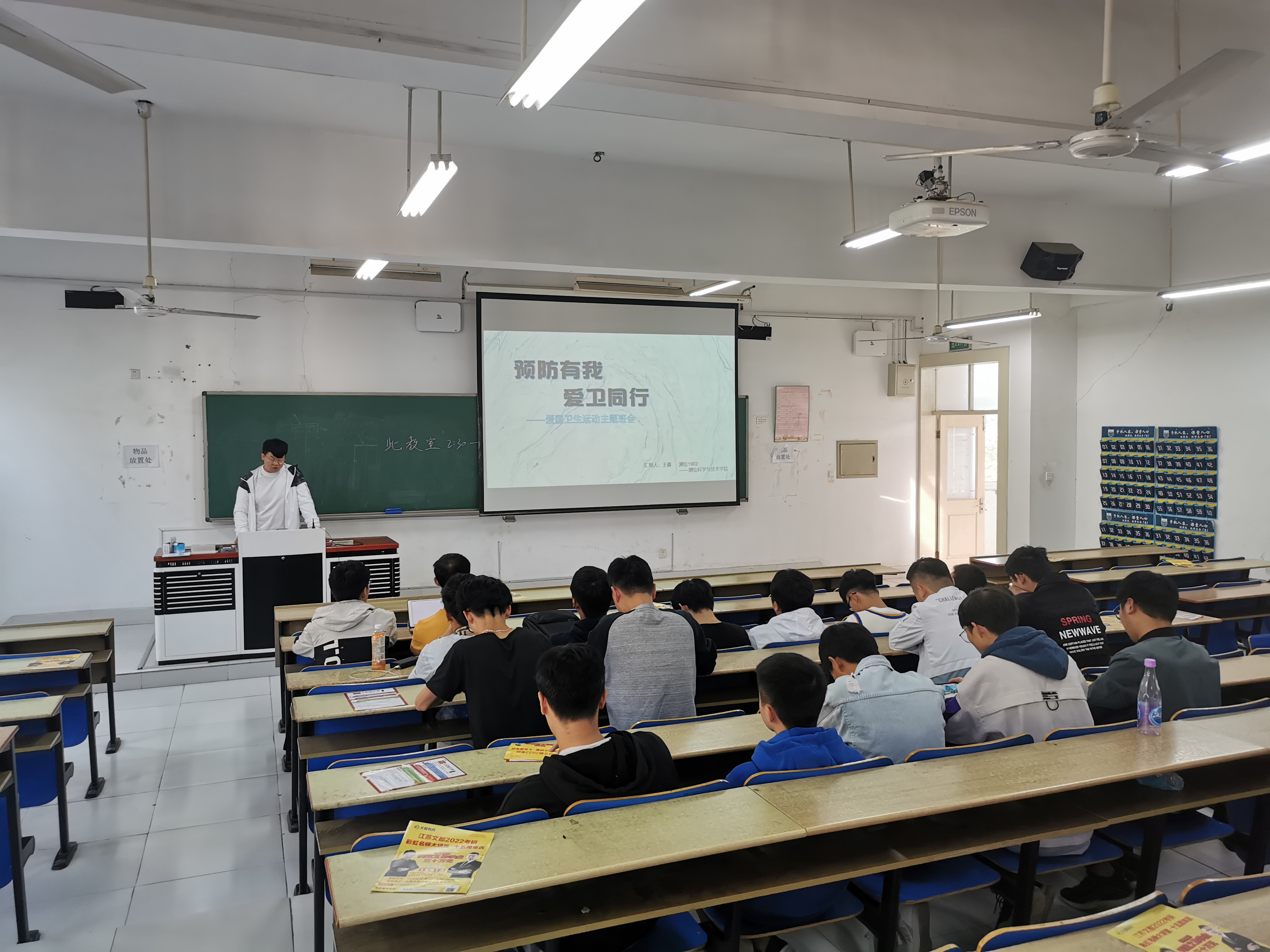 班会伊始,王睿代表班级首先发出了“传染病肆意横行,我们要保护自己,预防先行”的倡议,随后他向同学们解释了新冠病毒、艾滋病与肺结核这三种流行传染病的病理,并向同学们分享了相应的预防方法,提醒同学们日常注意防护,最后王睿同学就大学生常见心理健康问题和应对措施给大家做了普及,并告知同学们出现情绪低落可以找身边的同学亲友或心理委员倾诉,有心理问题也可以积极寻求辅导员或校心理健康中心的帮助。