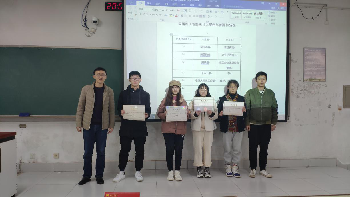 活动伊始,各支参赛队伍依次展示本组参赛作品,通过口述并附以PPT的形式介绍设计背景、创意来源、设计理念及制作过程,再由评委点评,综合评委打分、观众投票和小组互评择出优胜队伍。本次比赛中各支队伍的作品创意无限:利用工大建筑及道路形成芯片的外观构架、创意南工标志性建筑模型与虚拟平面图等各有千秋。最终,“一个人一队”以震撼的视觉效果夺得一等奖;二等奖由“中建八局南工分部”获得;“美丽约绘队”以围绕奶茶的新颖主题取得三等奖;“寿喜锅队”以七彩南工获得最佳创意奖。