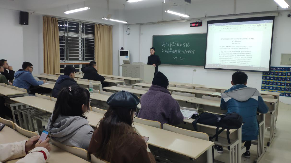12月21日晚,我院在同和420教室召开2021届本科毕业生就业座谈会。参加本次活动的有我院毕业班辅导员万钰炜、全体2021届求职毕业生。
