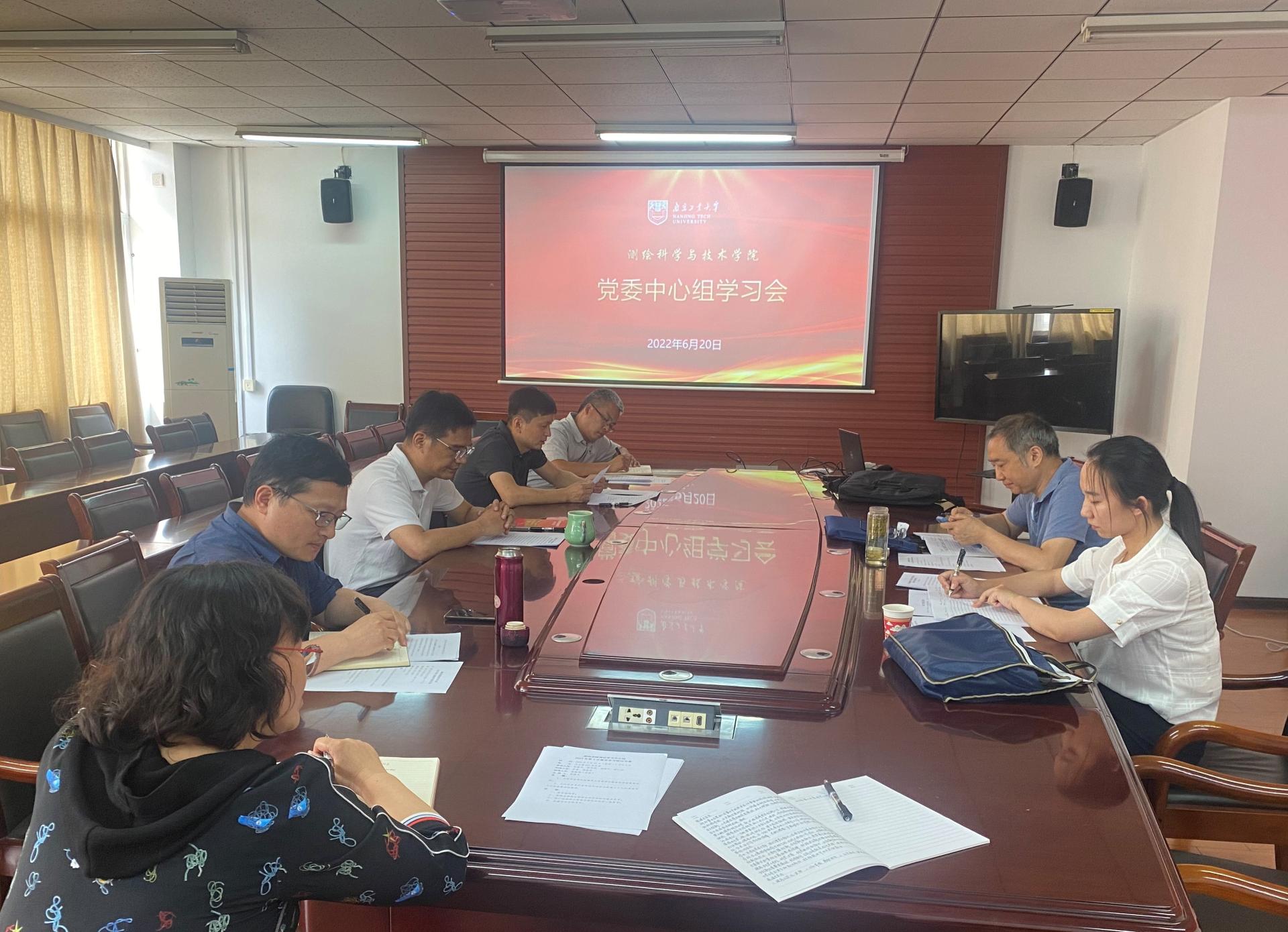 6月20日下午,yL23411永利官网登录党委理论中心组在天工楼622会议室开展集体学习,学院中心组成员参加。校第八巡察组副组长江定、联络员闻敬莅临指导巡学旁听。会议由学院党委书记俞建光主持。
