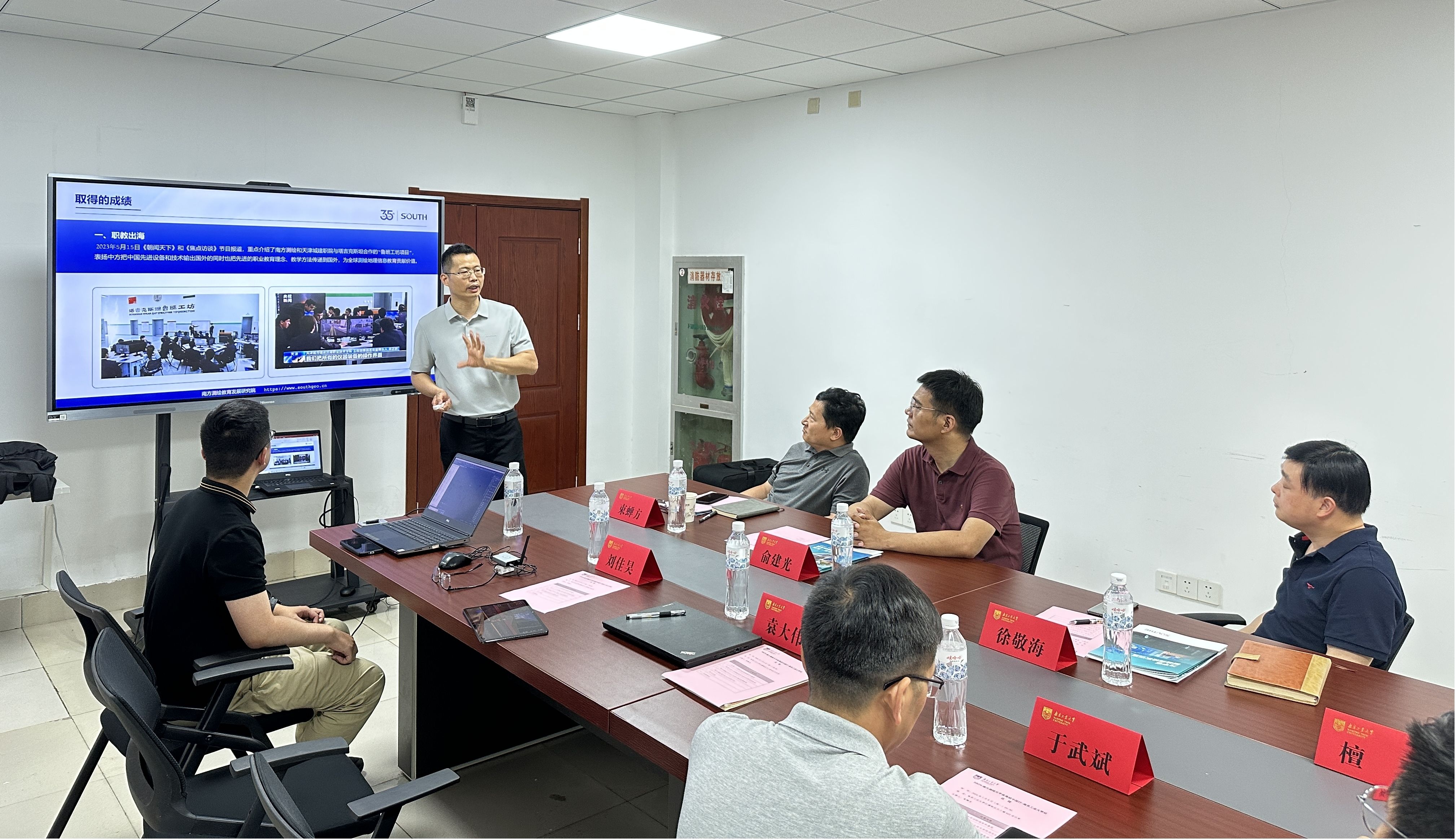 袁大伟总经理以“测绘地理信息+人才培养的南方实践”为题,介绍了测绘地理信息元宇宙技术的概念及南方测绘集团在虚拟仿真教学中的探索创新案例。教育事业部经理刘佳昊及团队成员现场演示了“元宇宙测绘技术应用”案例。双方还就测绘遥感专业虚拟仿真教学、产教融合等内容进行了深入讨论交流。
