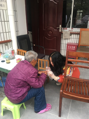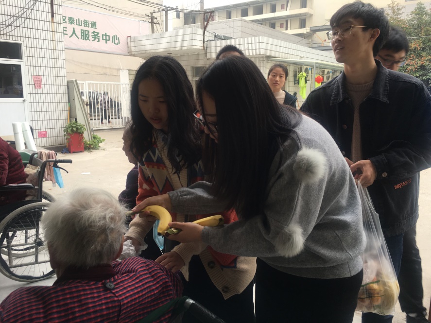 志愿者们于12:30在学校南门集合,乘坐公交车前往目的地。到达后,志愿者们将水果交给老人,老人和志愿者们分享他们的生活经历,志愿者们耐心倾听,并与老人亲切交谈,询问他们身体状况,了解他们日常;志愿者们帮老人剪指甲、为老人们打扫卫生,尽自己的力量为老人做力所能及的事情。志愿者们的到来使老人们脸上绽放着微笑,为他们的生活增添了欢乐,在依依不舍中,本次活动圆满结束。