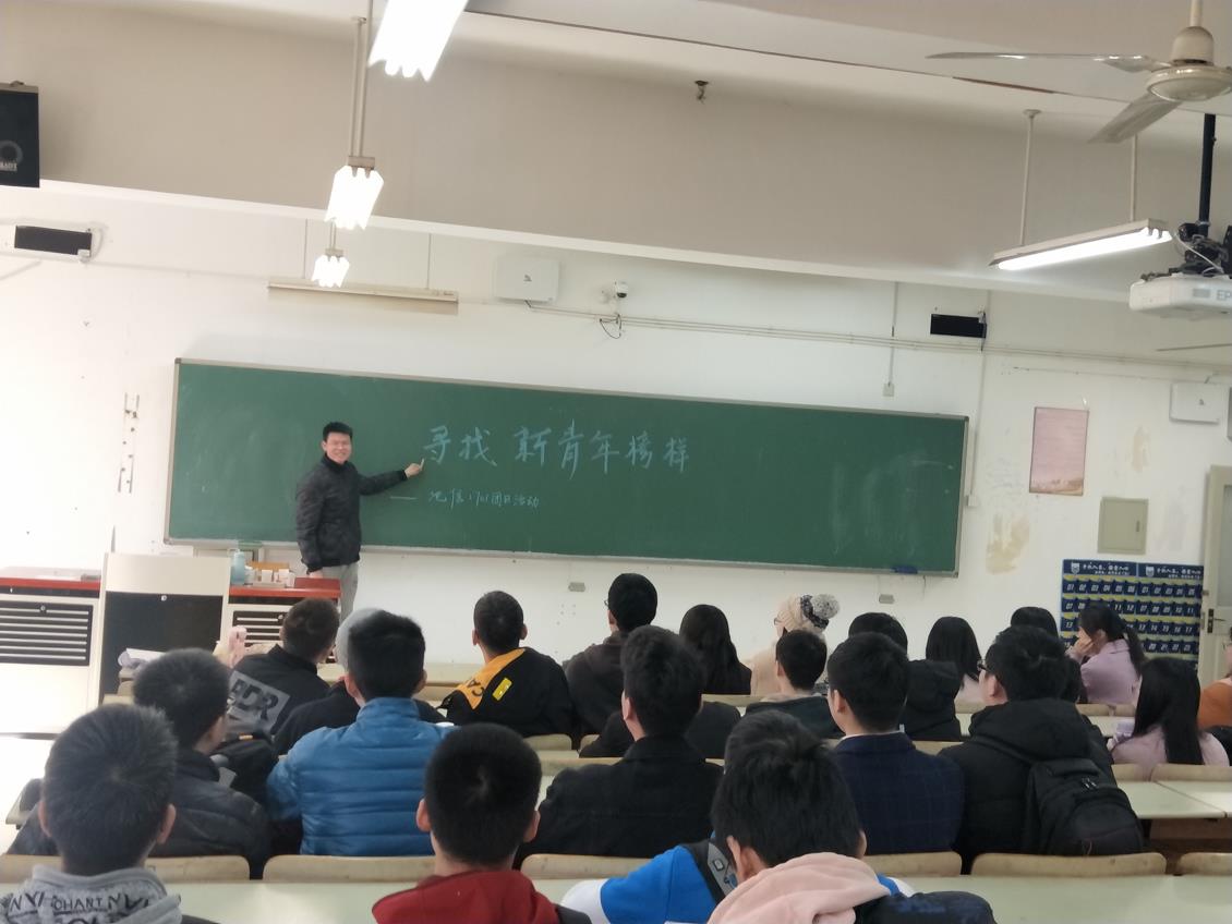 活动最初,团支书赵可开展了团会,阐明活动目的,发布任务。鼓励团员青年走出教室,走出校园,采访和了解心目中的新青年榜样,制作微视频来宣传榜样力量。活动历时两周,同学们纷纷寻找自己身边的榜样,进行采访,并制作了微视频。在完成了一系列的视频制作之后,开展了集中交流分享会。其中狄兮尧同学向同学们讲述了采访优秀教师汤家凤的故事。他表示汤老师是他心目中的青年榜样,鼓励了他不断学习和追求进步。燕勇组寻找到的新青年榜样是一位热衷投身贫困地区支教事业的大三的许世林。同为大三的学生,许同学已经利用寒暑假期积累了丰富难忘的支教经历。团员们都羡慕的表示,值得利用假期时间做一些对社会对自身都有意义的事。
