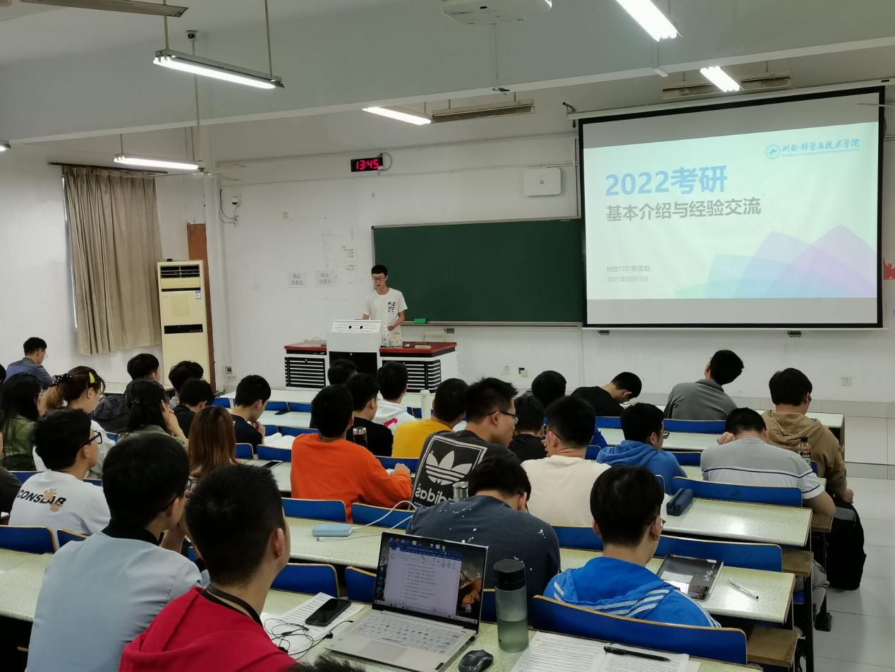 为帮助本科生明确考研目标,掌握考研的复习方法与技巧,我院于5月16日下午在仁智楼415举办考研经验交流分享会,2021年研究生入学考试中取得优异成绩的衡雪彪、杨天、陆宇翔、石凌峰等同学应邀为大家分享了他们的考研经验。团委副书记许琳老师和2017级辅导员万钰炜老师参加。