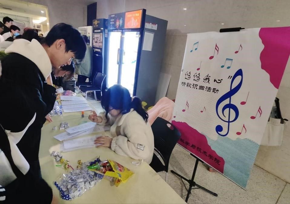 3月22日下午,我院于国重楼一楼大厅参加“320集市”活动,并于本学院摊位上开展听歌识曲趣味活动。本次活动由我院心理协会会长顾喆熠主持,部分院心理协会成员共同参与举办,辅导员鲍明坤到场指导。