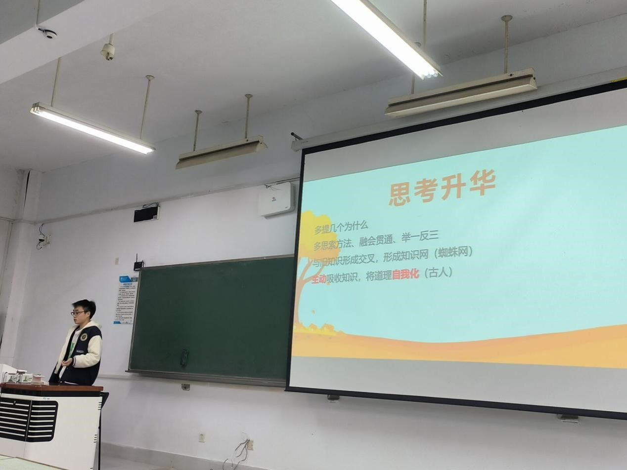 活动伊始,张岳豪学长向同学们介绍了有关大创的注意事项,他从什么是大创、大创的流程以及结题条件展开,为大家做了详细的讲解。接着,他又以自身的心得体会来谈开展大创过程中的注意点以及难点,并就同学们提出的问题予以细心指导。接着由柏德强学长讲述数学竞赛以及高数的学习技巧和方法,他从日常学习开始,阐述考试以及竞赛之间的关系和区别,同时他也分享了备战高数考试和数学竞赛的经验,参加讲堂的同学们都受益匪浅。