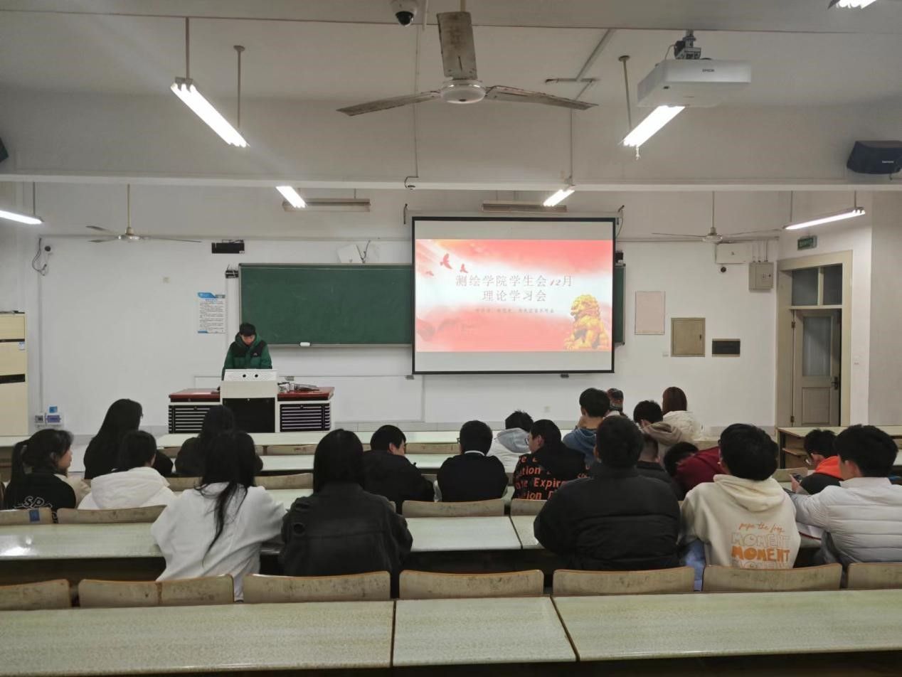 12月8日我院于仁智楼402举行学生会12月理论学习会。会议由学生会主席团成员张锦川主持,新宣部部长张碧松主讲,全体学生会成员参加。