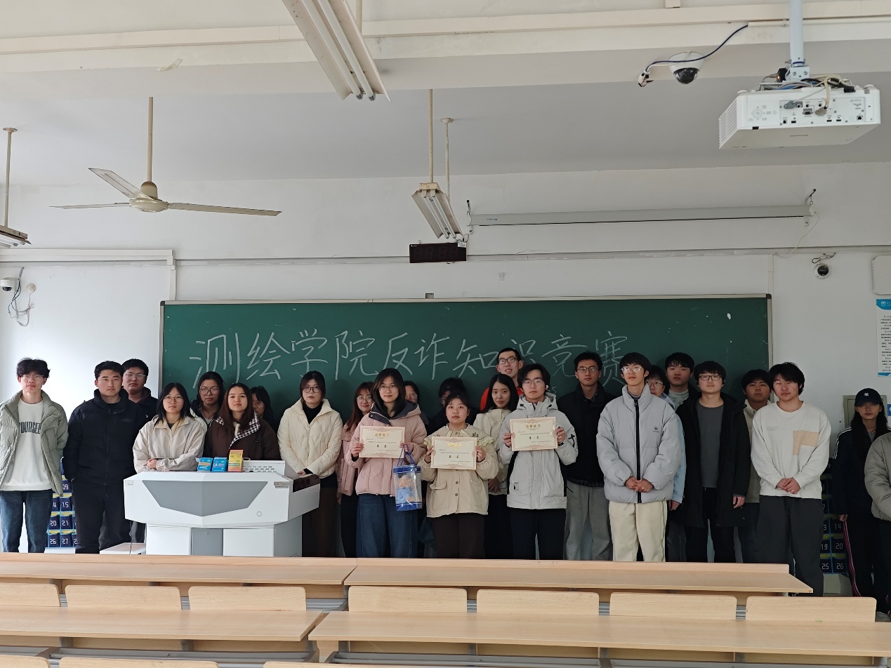 活动伊始,主持人先带领同学们进行了一场“快问快答”的热身游戏。随后,正式竞赛采用闭卷答题形式,涵盖知识识记、情景判断、案例分析等多元题型,将理论知识与真实诈骗场景深度融合。参赛学生在规定时间内认真作答,展现出扎实的知识储备与冷静的分析能力。竞赛结束后,评委老师现场阅卷并公布成绩,为前三名获得者颁发荣誉证书并合影留念。