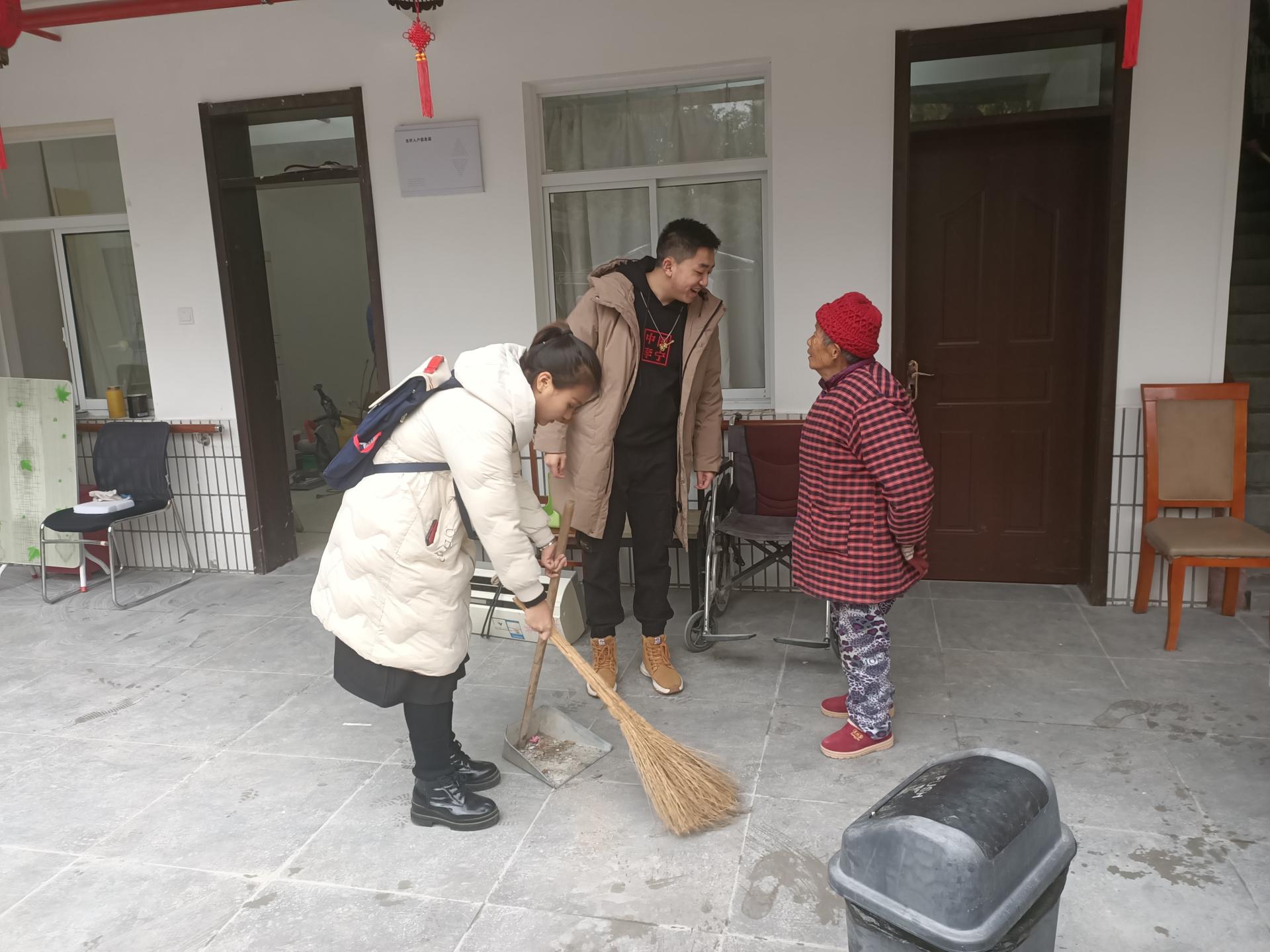 12月1日下午1:00,我院学生志愿者前往“银杏树”敬老院开展本次志愿活动。在本次志愿服务活动中,恰逢敬老院装修,志愿者们分组到老人家中打扫卫生。志愿者们一边打扫卫生一边与老人交流,交流中发现大多数老人独居且活动不便,平时打扫卫生也存在困难,于是志愿者们细心清扫、帮助老人将物品摆放整齐。在本次活动结束时,志愿者们与敬老院负责人合影留念。
