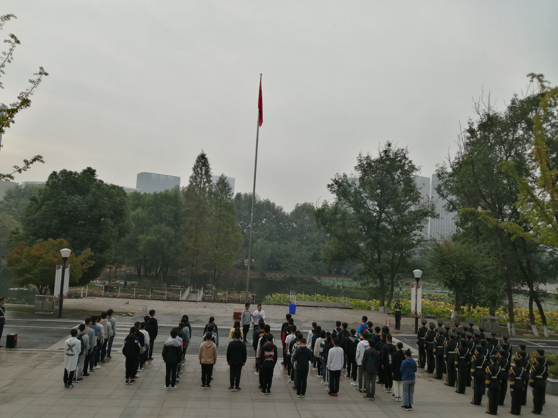 10月21日早7:00,我院“升旗进班级”活动在行政楼前广场举行,本次活动由团委副书记许琳带队,国旗护卫队成员与我院各班级同学参加。