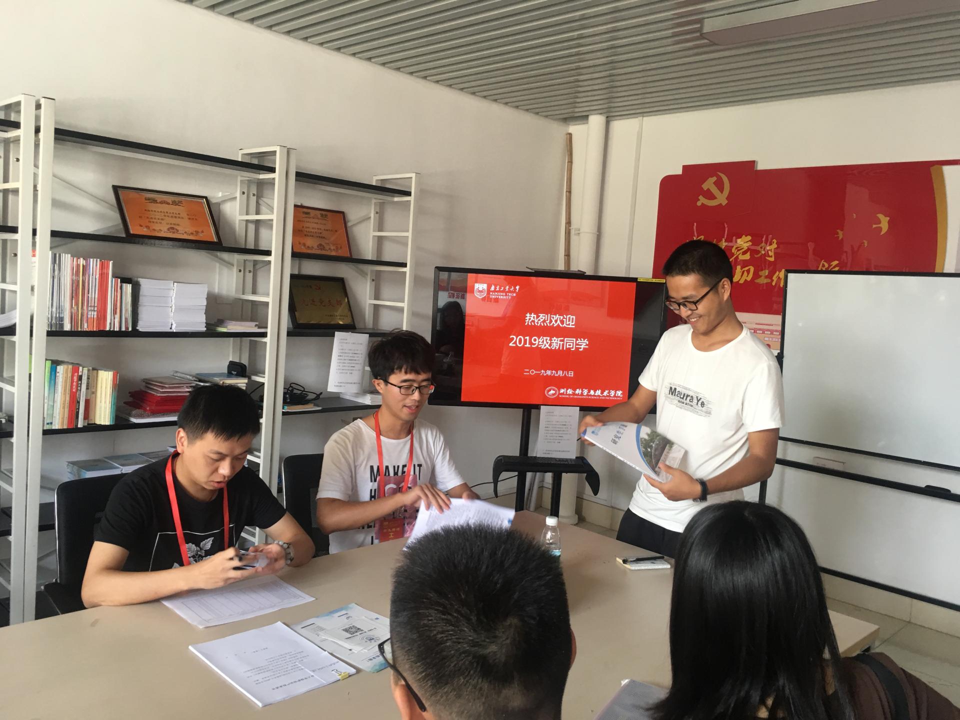 9月8日,2019级研究生新生报到工作在天工楼C616顺利完成。研究生辅导员许琳老师带领研会主席仝晓哲、副主席刘翰琪负责接待和办理相关手续。期间,学院党委书记段然堂老师到场察看并指导报到工作。