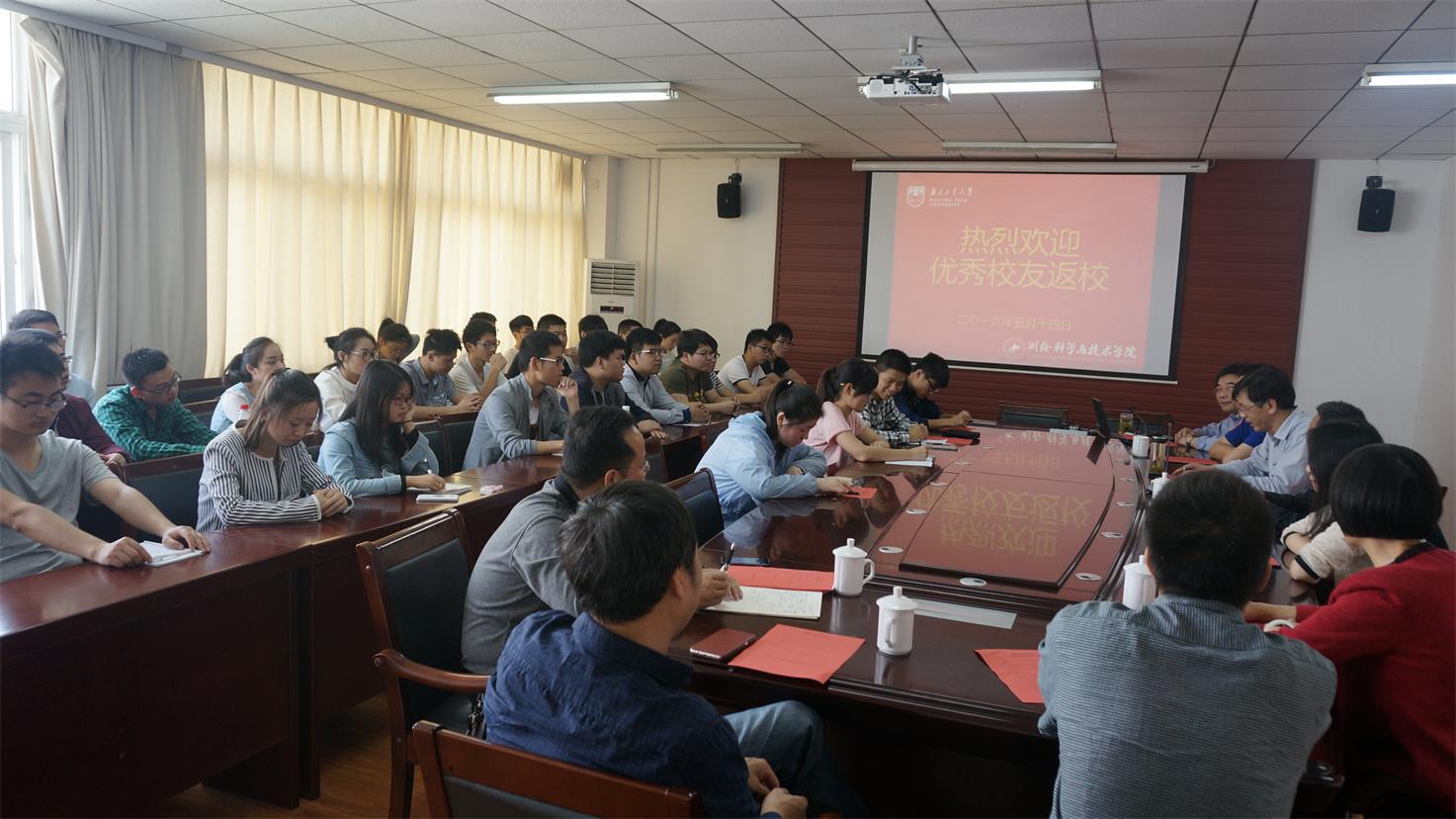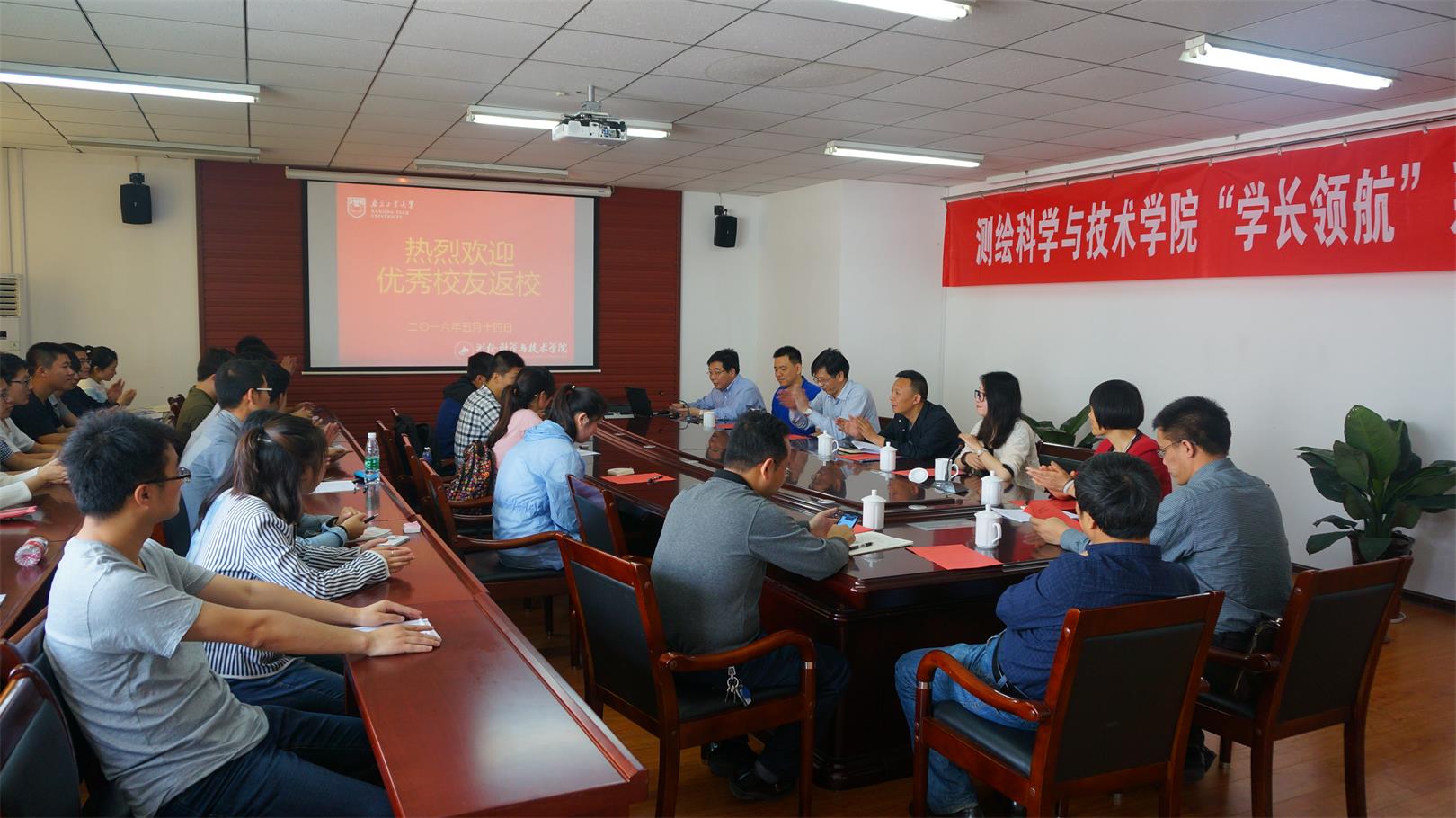5月14日上午10:00,在江浦校区天工楼C606会议室,学院举行了“学长领航”之“走近优秀校友,启迪成功人生”座谈会,周秋云、张铁波、卢星校友、李明峰院长、申勤俭、郑国才、马文波、蔡杰等老师及学生代表出席了会议,会议由副院长吉文来主持。