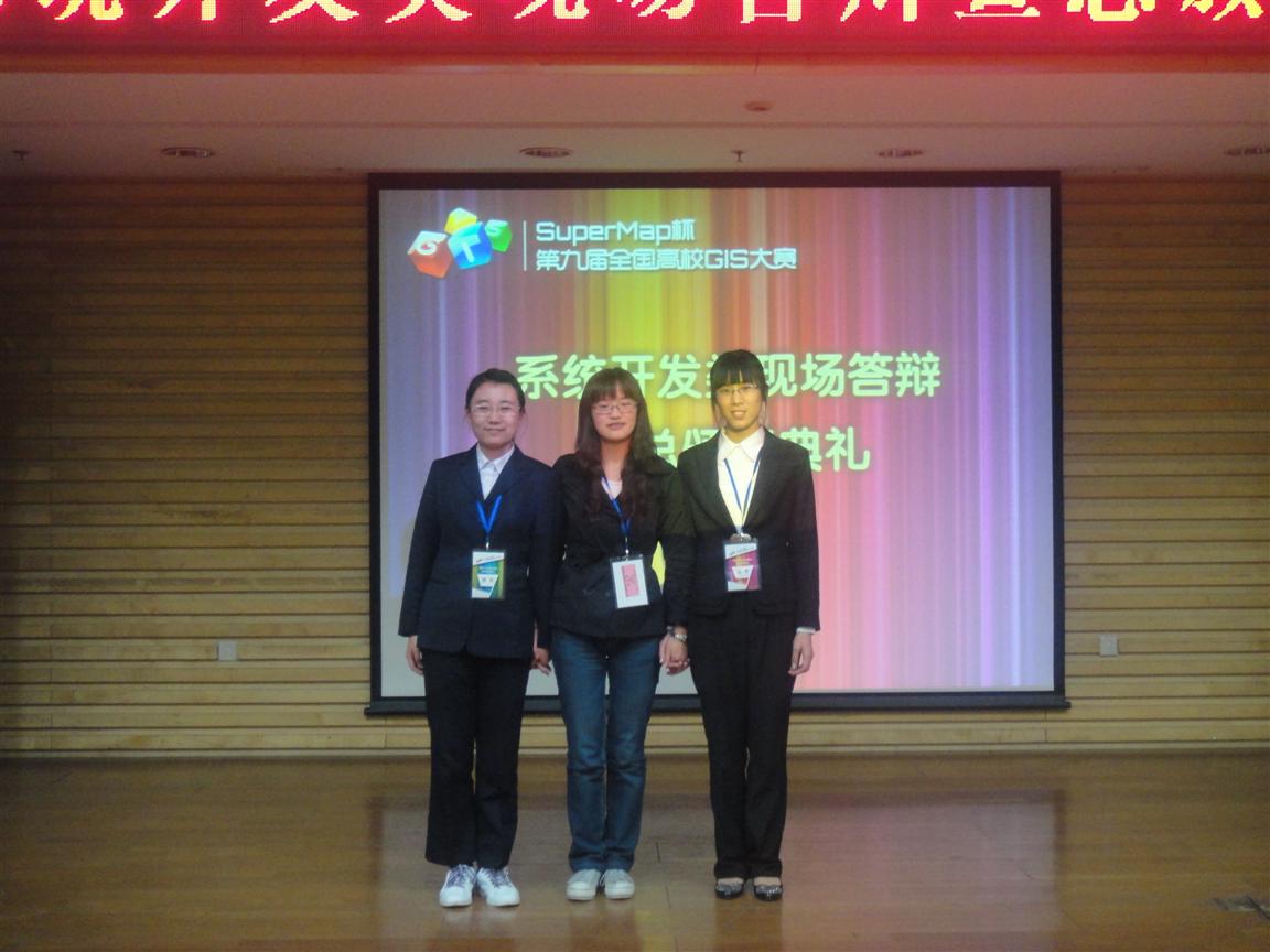 2011年11月26日,由中国地理学会与超图软件联合主办的“SuperMap杯第九届全国高校GIS大赛系统开发类现场答辩暨总颁奖典礼”在北京林业大学隆重举行。本次大赛共设有制图组、应用分析组、移动GIS创意开发组、组件开发组及web应用开发组五个组别,吸引了28省市的近200所高校的数千名学生参赛,每组产生一等奖1名,二等奖2名,三等奖3名。