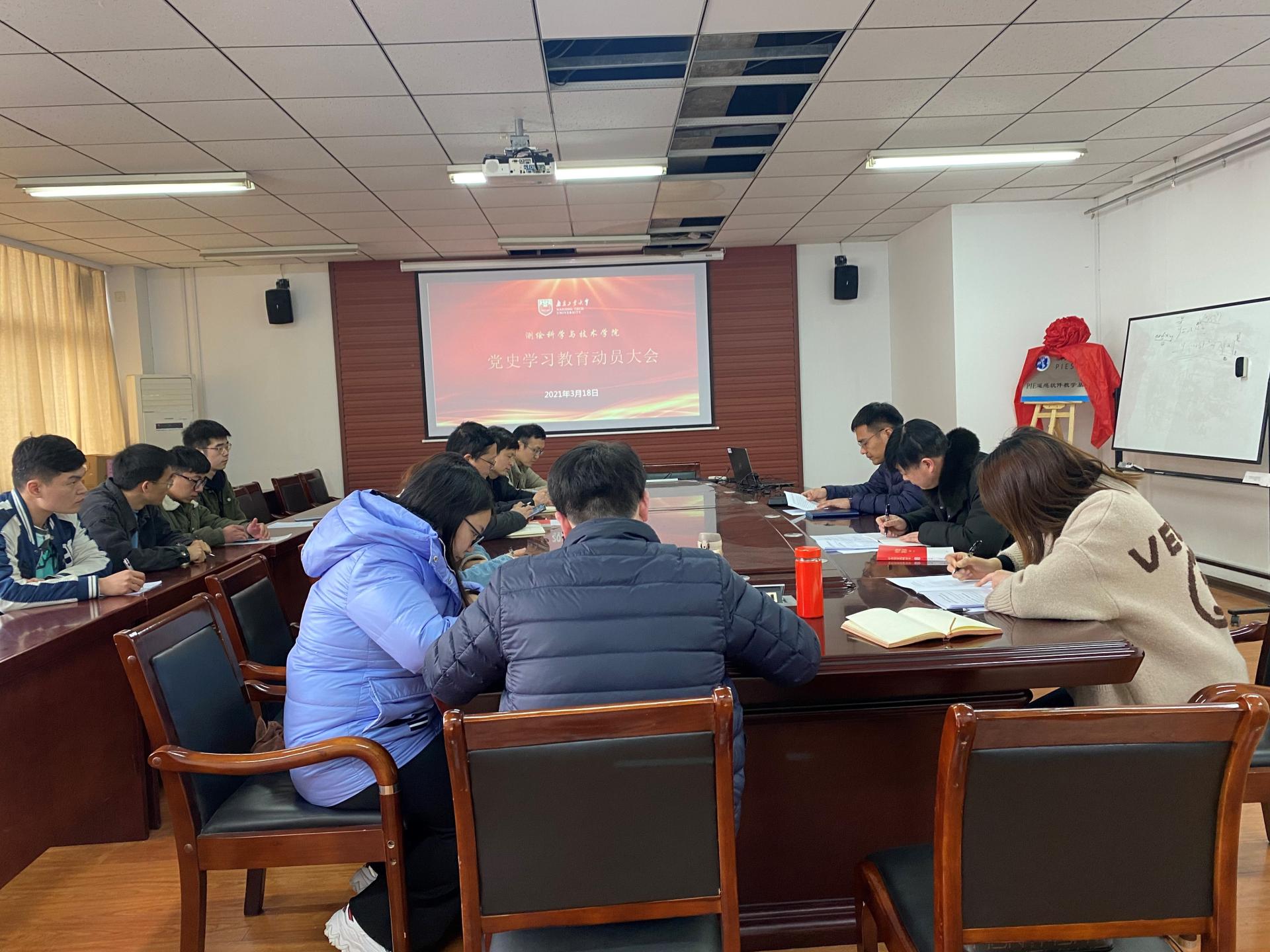 院党委书记俞建光作动员讲话,他从充分认识党史学习教育重大意义、准确把握党史学习教育目标要求、切实加强组织领导等三个方面对党史学习教育作了全面动员和部署。他指出习近平总书记关于党的历史的重要论述,特别是在党史学习教育动员大会上的重要讲话,高屋建瓴,思想深邃,为我们开展好党史学习教育指明了方向,提供了根本遵循,广大党员干部要深入学习、认真领会,不断增强学习党史的思想自觉、政治自觉和行动自觉。