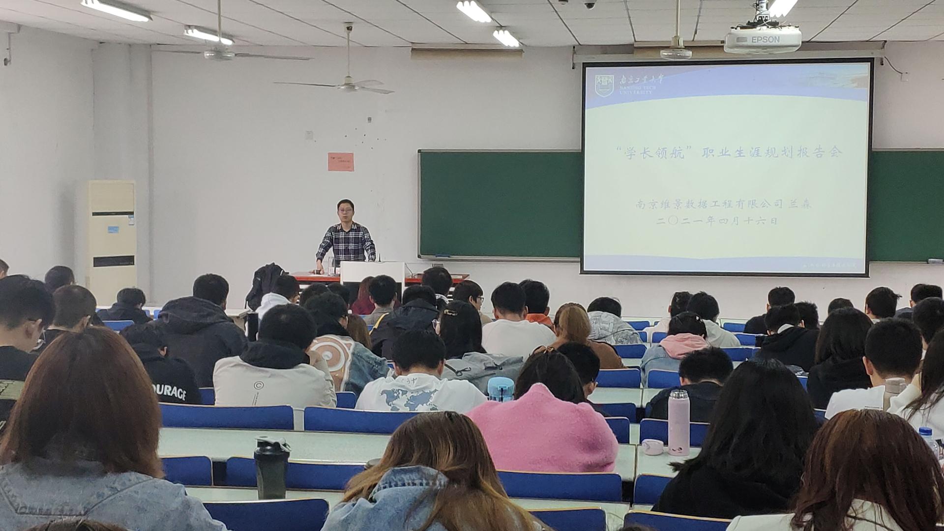为推进就业指导工作,帮助大学生明确学习目标,促进学生树立职业意识,更好的适应社会对人才的要求。我院于4月16日下午在仁智502举办“学长领航”职业生涯规划讲座。测绘工程专业2004届学生、南京维景数据工程有限公司总经理、校外职业生涯规划导师兰森应邀作讲座。学院2018级全体学生参加。