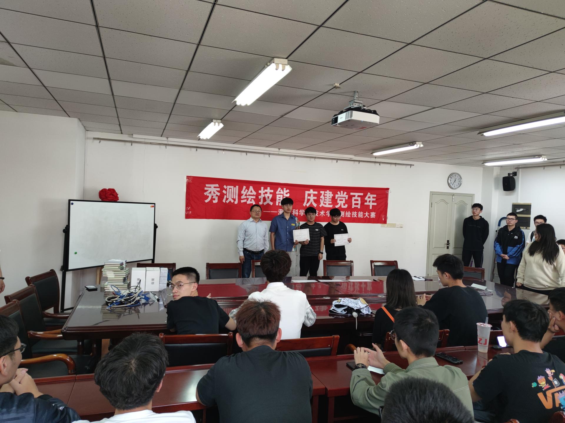竞赛过程中,各小组分工明确且有条不紊,安装仪器、粗平、瞄准、精平、测量记录,整场比赛紧张有序。经过一天激烈、紧张的角逐,评委们通过仪器操作、成果质量和竞赛用时等方面进行判定打分,决出了获胜队伍。副院长束蝉方和院团委副书记许琳为获奖队伍进行了颁奖。
