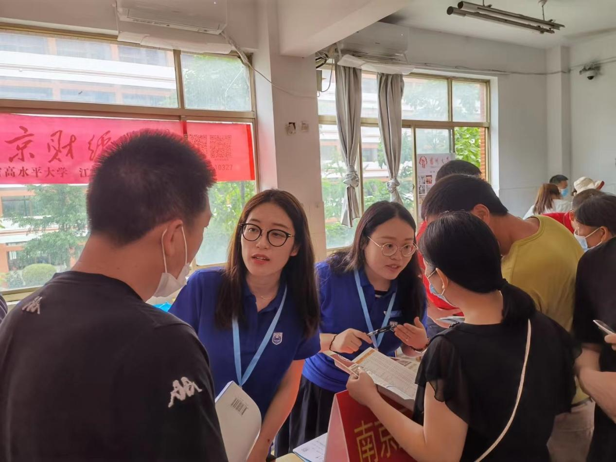 学院招生宣传工作组提前与连云港赣榆高级中学、赣榆一中、海头中学、东海中学等优质生源基地联系,在高三年级毕业生返校前安排好招生咨询展位。在咨询现场,工作组老师从我校的办学条件、学科特色、招生政策及往年录取分数、排名位次等方面详细解答了考生和家长提出的问题,并根据学生的高考成绩给予填报志愿方面的合理建议。此外,我院还通过进校宣讲、QQ群、微信群、基地驻点、电话跟踪回访等线上线下多种形式,向考生和家长发布我校最新招生信息和优录政策,为我校争取更多的优质生源。
