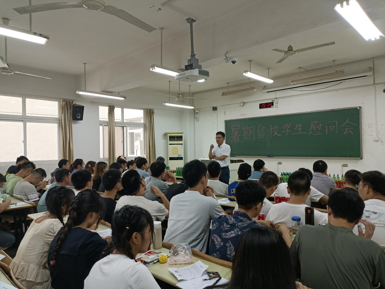 7月12日下午,我院在同和楼208召开2021年暑期留校学生慰问会,学院党委书记俞建光、院长徐敬海、党委副书记荣华伟、副院长束蝉方、张广运、学办主任张甲田、2018级辅导员许琳及所有暑期留校学生参加。慰问会由2018级辅导员许琳主持。