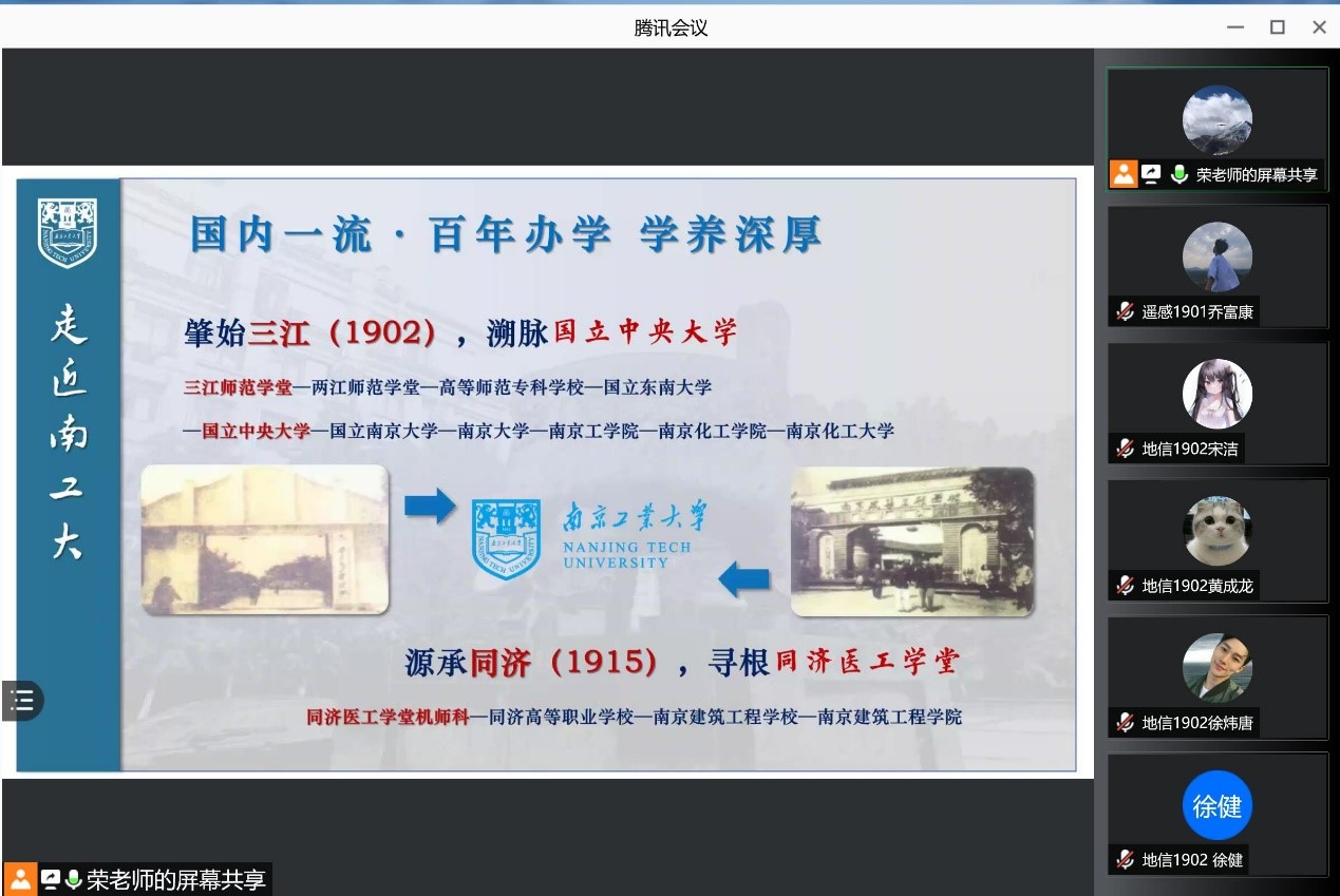 首先,荣华伟副书记介绍了学校的历史沿革、人才培养、发展优势及地理位置等,并详细介绍了校内环境、食堂、住宿、楼宇及学校周边等情况。会上,他对新生也提出了要求和期望,希望大家尽快调整状态,进入到网课学习中,要保持良好的作息习惯,从第一课开始就认真一步一个脚印的扎实学习。荣书记还提醒大家做好疫情防控,按学校通知做好开学准备,同时强调了入学后良好宿舍氛围的重要性。