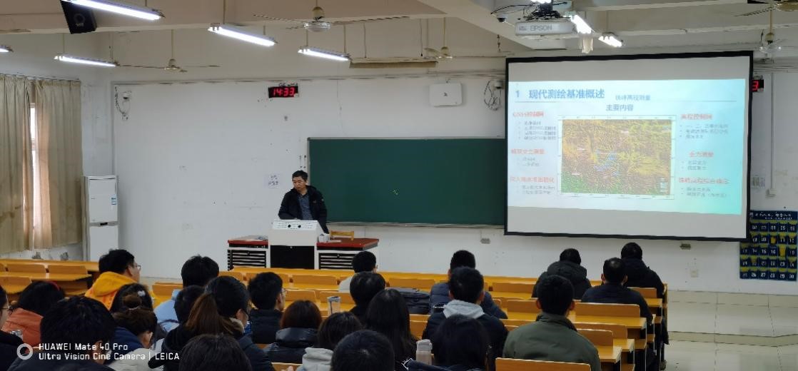 报告会中,两位企业专家结合自身的科研和工程实践经验,对实现江苏省现代测绘基准建设的关键技术、SAR影像数据地面沉降监测的关键技术与进展等进行了详细讲解,结合具体案例对相关测量问题的技术难点进行了分析,并指出了2018级同学在毕业生产实践环节中的常见问题。