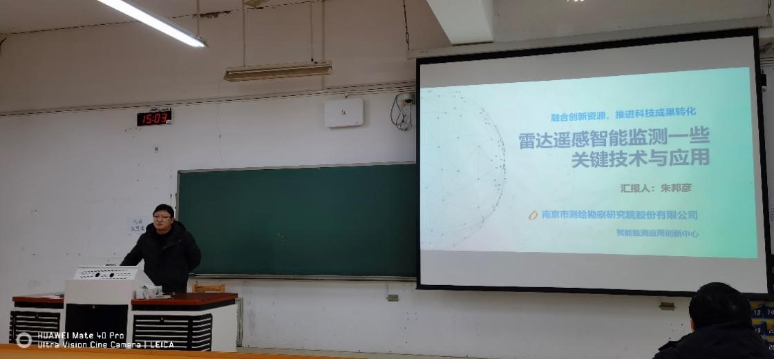1月10日,应学院邀请,江苏省测绘工程院王勇教授级高工、南京市测绘勘察研究院股份有限公司智能监测中心总经理朱邦彦高工,针对我院测绘工程专业毕业生产实习需求,为2018级同学分别作了题为:“江苏省现代测绘基准建设与展望”、“雷达遥感智能监测关键技术与应用”的报告。报告会由测绘工程系主任王彬主持,束蝉方副院长、管栋良、王帅、沈楠、陈宇等老师参加了报告会。