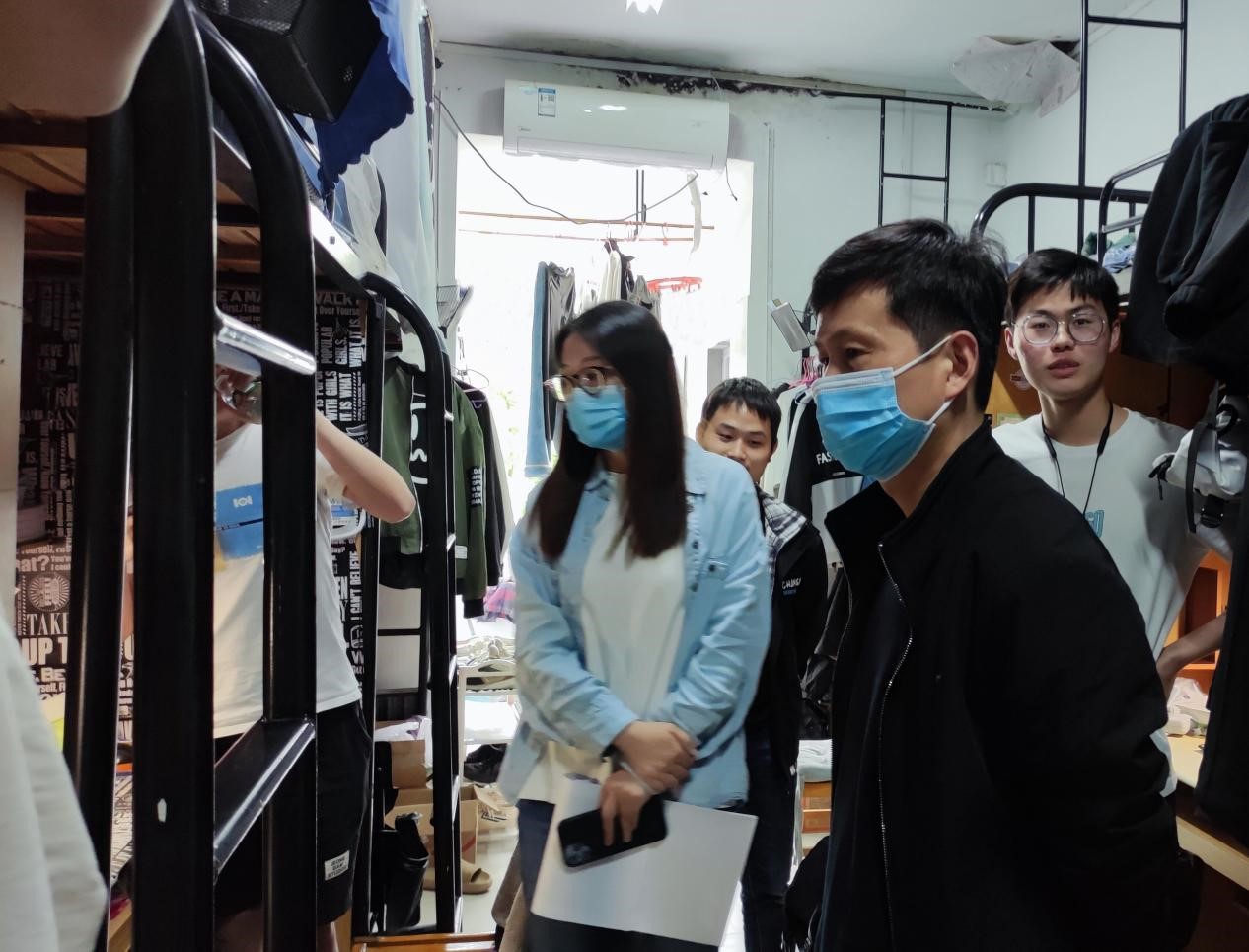 为进一步提高学生宿舍卫生安全、疫情防控意识、保障身体健康、促进优良舍风形成,4月27日下午,学院党委副书记荣华伟带领全体辅导员对学生宿舍卫生及安全隐患进行了专项检查。