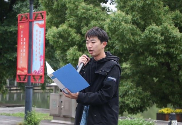 仪式伊始,主持人介绍了本次活动的主题和意义。接着,国旗护卫队成员普及了国旗法和国歌法的相关知识,提醒大家要尊重和爱护国旗、国徽、国歌,增强法治意识和公民责任感。接下来举行升旗仪式,全体师生肃立注目,高唱国歌,声音洪亮、铿锵有力。随后,学生代表张岳豪做了“筑梦中华,在我青年”的发言。最后,党委副书记荣华伟讲话,号召同学们要传承红色基因,坚定理想信念,勇于使命担当,用青春之力量奋进新时代,努力成长为堪当民族复兴重任的时代新人。