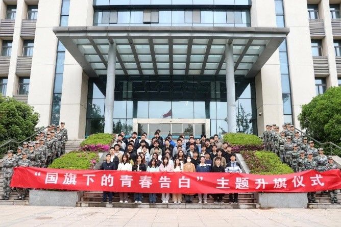 4月24日上午,我院师生参加了校 “国旗下的青春告白”主题升旗仪式。学院党委副书记荣华伟、辅导员鲍明坤、2022级部分学生参加了本次活动,升旗仪式由程新文同学主持。
