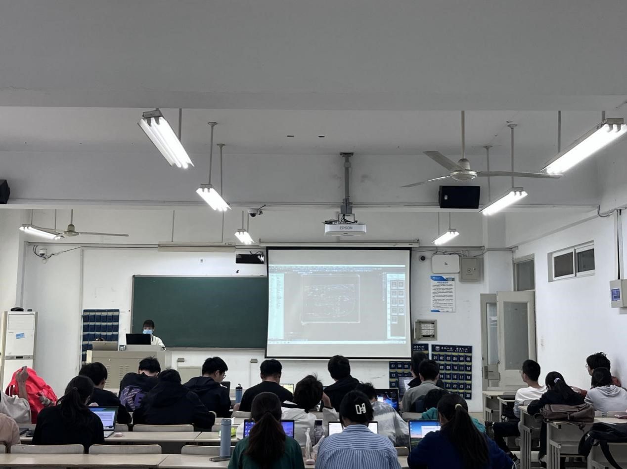 在《数字测图原理与方法》课堂,南方测绘赵艺薇工程师详细介绍了最新成图软件SouthMap和数字测图虚拟仿真软件的功能和详细操作,指导学生利用软件开展数字测图数据采集和内业成图。在《激光雷达测量技术》课堂,南方测绘胡翔工程师为学生详细介绍了SAL-1500机载三维激光扫描测量系统基本结构和功能,演示了外业数据采集过程和内业点云数据处理。