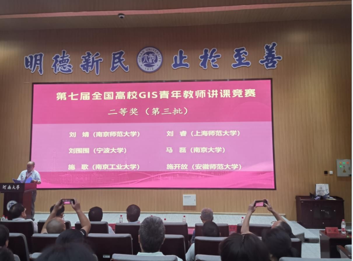 7月11-13日,第七届全国高校GIS青年教师讲课竞赛在河南大学举办。本次GIS青年教师讲课竞赛是由中国地理信息产业协会指导,河南大学等主办,中国地理信息产业协会教育工作委员会、河南大学地理与环境学院、河南省时空大数据产业技术研究院等承办。来自南京大学、武汉大学、中南大学、中国地质大学、华东师范大学、战略支援部队信息工程大学等全国80余所高校的GIS相关专业优秀青年教师参加了本次竞赛,最终评选出特等奖3名、一等奖10名、二等奖30名、三等奖与优胜奖若干名。我院青年教师施歌讲授的《GIS叠置分析》荣获二等奖。