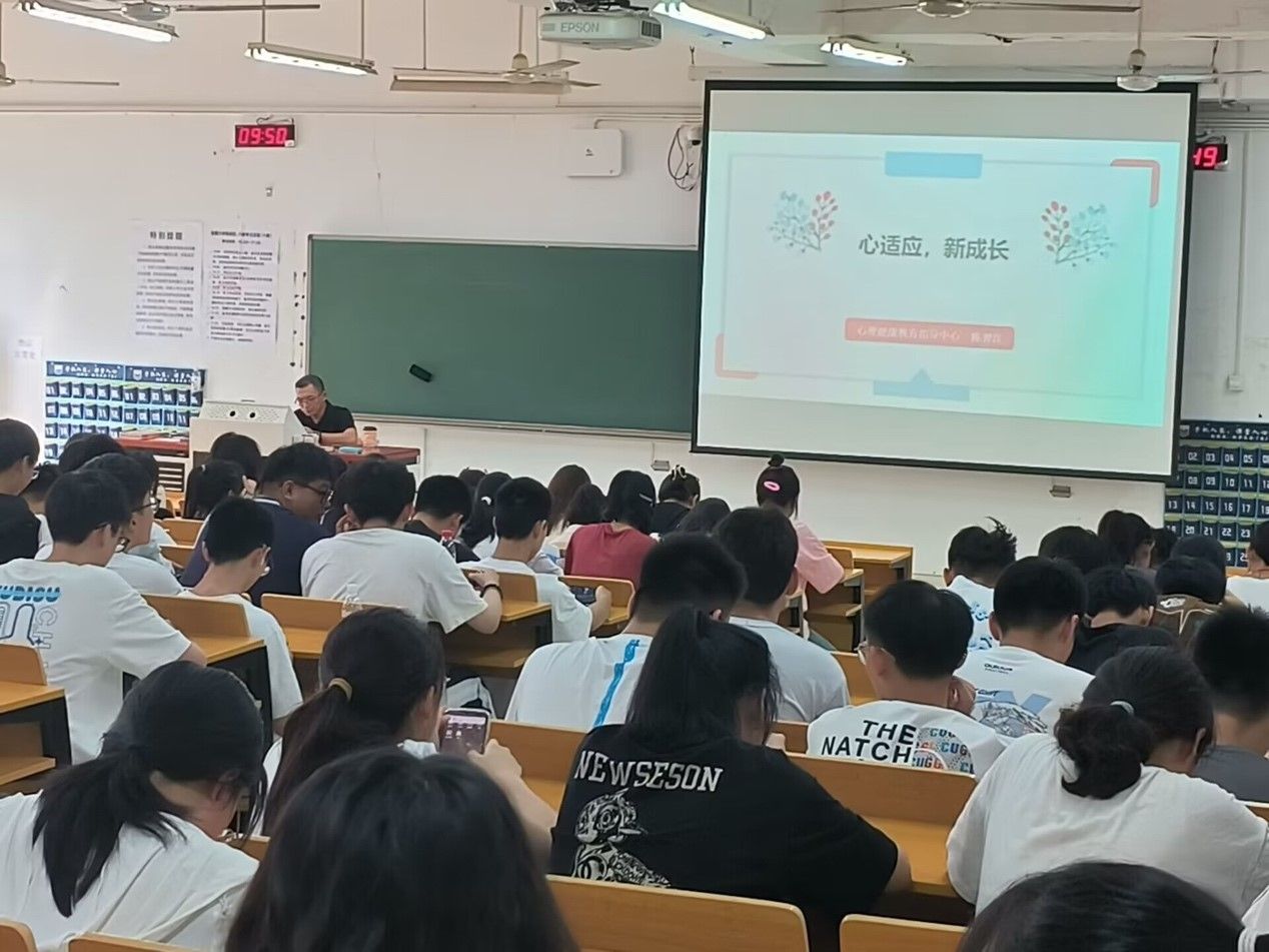 为提升新生的心理适应能力,9月11日上午我院于同和楼513成功举办心理适应教育讲座。本次讲座由辅导员张甲田主持,校心理健康中心陈奕江老师主讲,全体2023级新生参加。