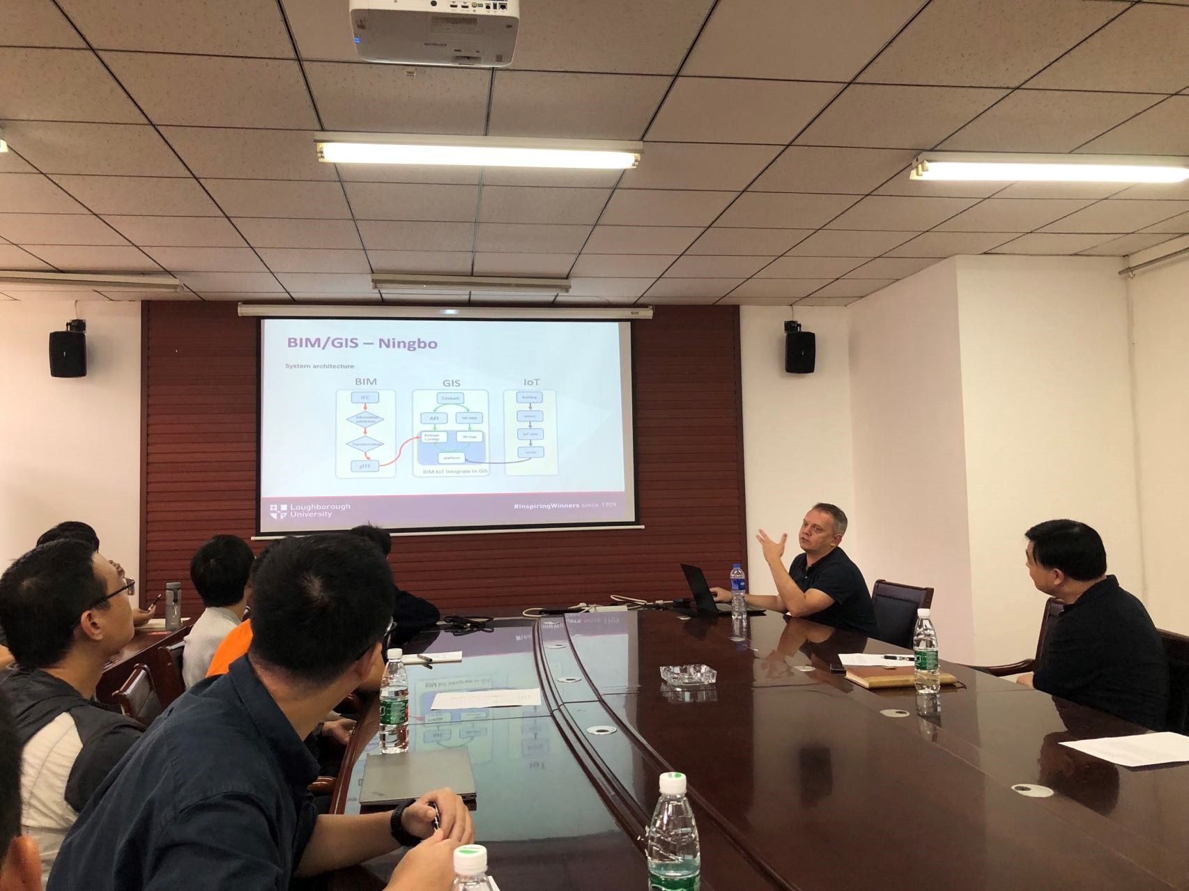 报告会上,克雷格-汉考克博士做了题为“Digital Twinning for Monitoring Infrastructure including Solar Farms”的报告。首先,他介绍了BIM和GIS的发展历程,并阐述了集成这两个技术的必要性。接着,以宁波诺丁汉大学为例,他展示了BIM、GIS和IOT的集成架构,并概述了基于GIS+BIM智能绿色建筑信息管理平台的应用。
