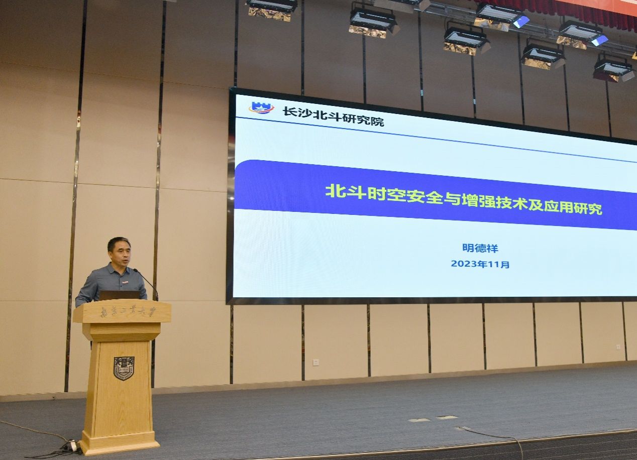 仪式后,明德祥教授为与会师生做了题为“北斗时空安全与增强技术及应用研究”的学术报告。