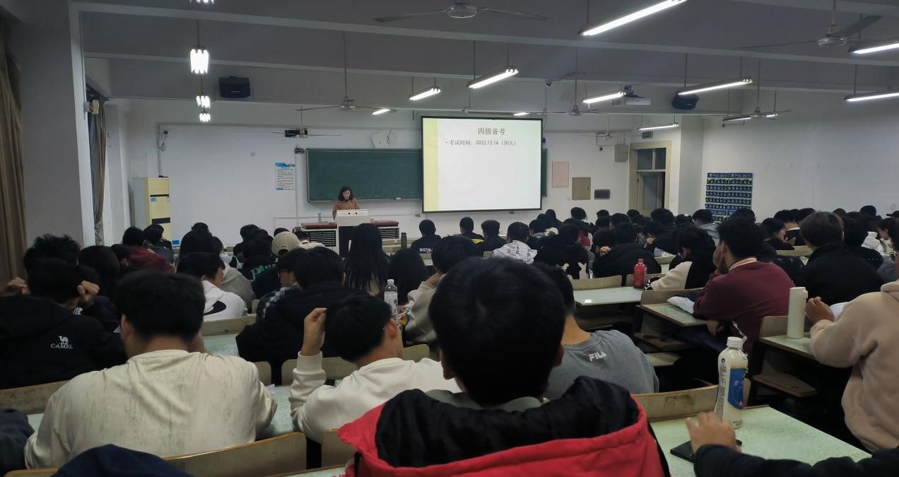 大学英语四级考试将至,为进一步加强学生英语学习能力,提高英语四级通过率,11月15日晚,我院特别邀请外国语言文学学院陈皓老师在仁智402教室为我院全体学生开展英语四级培训会。