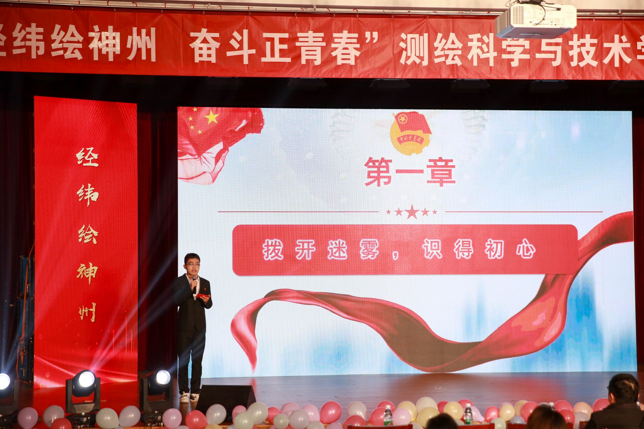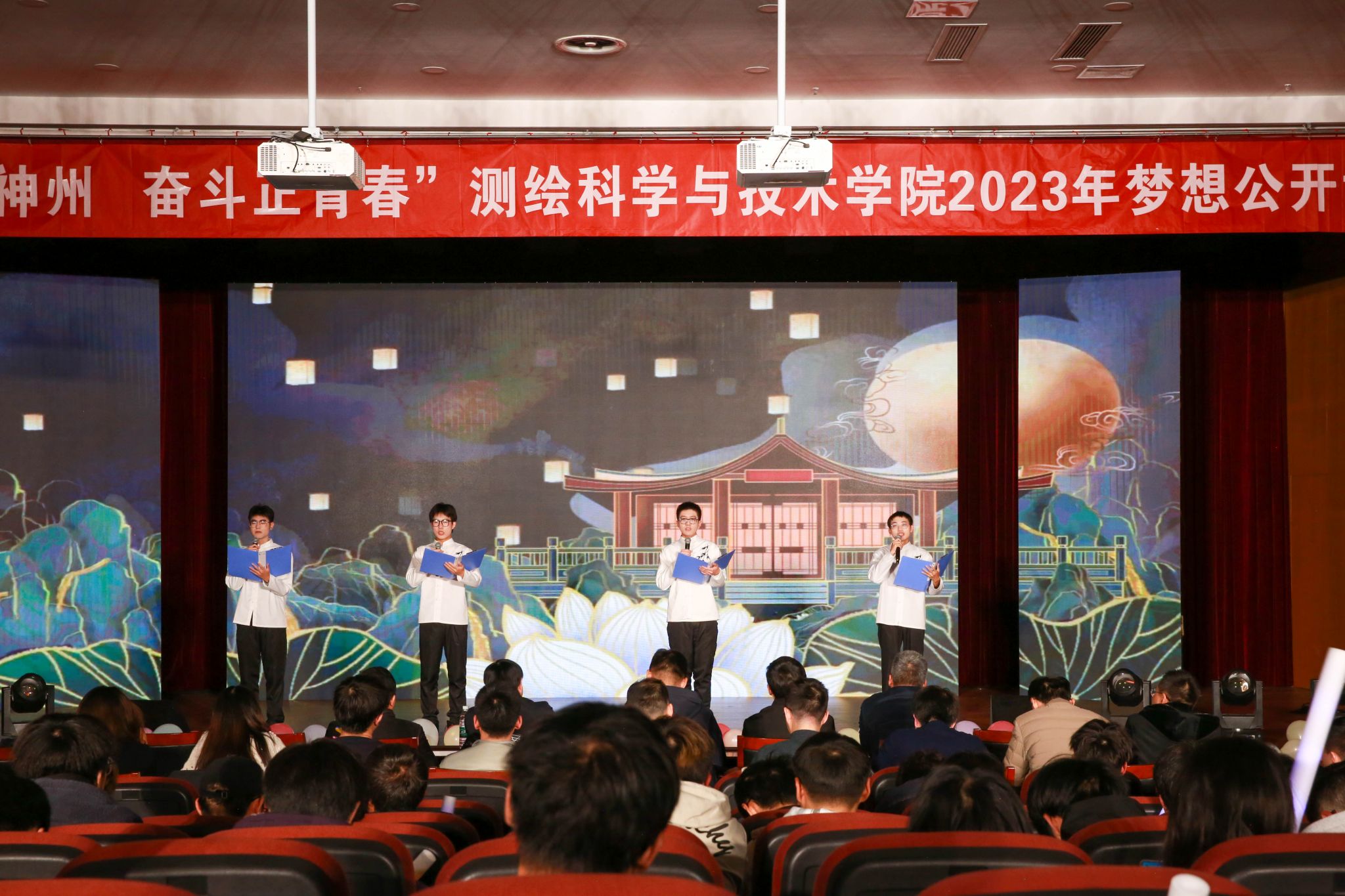整场晚会分为“青春凯歌,逐梦山海”、“流光溢彩,放飞梦想”“测绘寰宇,奋楫远航”三个篇章,通过舞蹈、器乐、小品、颁奖典礼、青春榜样分享会等丰富的形式,充分展现测绘学子的青春风采。