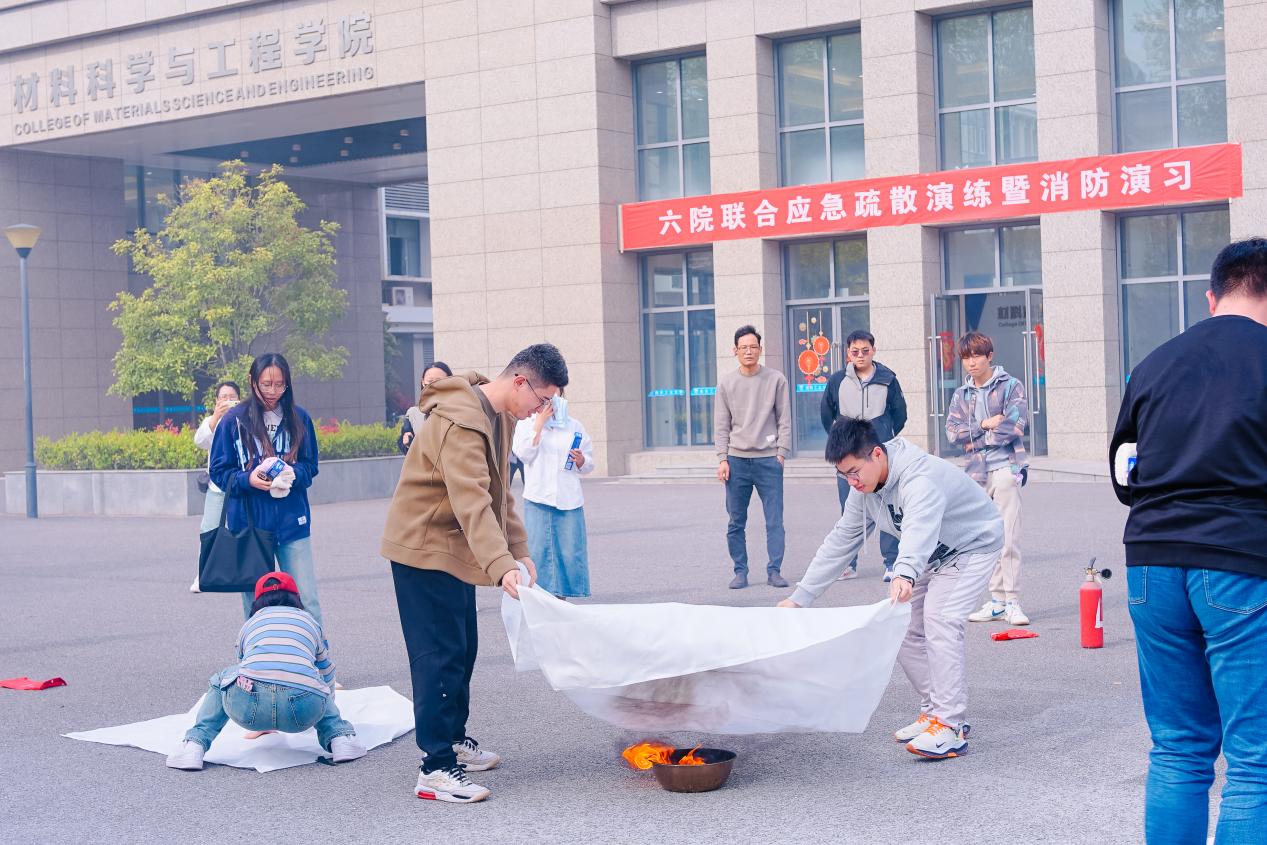 4月10日下午,我院师生参加了由材料科学与工程学院、城市建设学院、安全学院、土木工程学院、交通运输工程学院、yL23411永利官网登录等共同举办的六院联合安全专题会议暨消防应急演练活动。在润德楼B512会议室,大家听取了实验室建设与管理处陈晓猛处长做的题为“安全意识在心中、规范操作在手中”的报告以及保卫处张思宇老师做的题为“消防安全知识培训”的报告。会议结束之际,消防警报声响起,六个学院的师生代表在润德楼前广场进行应急疏散演练,并开展消防演习。在演习前先进行了消防知识的趣味问答环节,与会人员积极参加,气氛热烈。演习中包括消防防毒面具、灭火毯和灭火器的使用说明培训和现场实操。