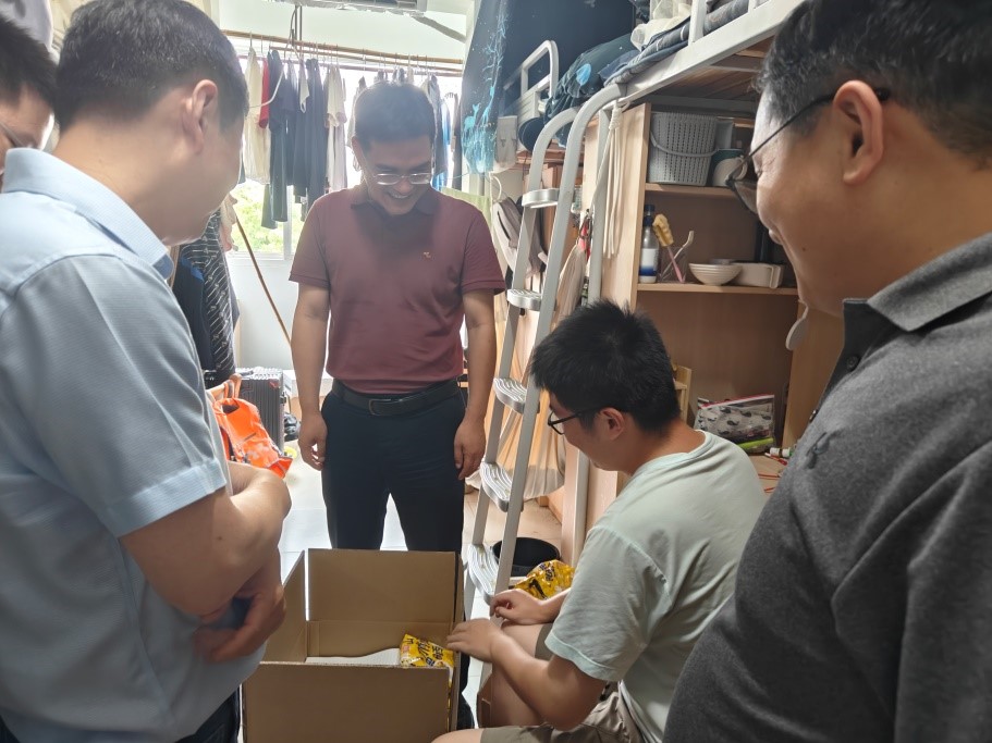 在走访过程中,学院领导、老师与毕业生们亲切交谈,细心询问他们的离校安排和行李寄送情况,了解他们的毕业去向以及就业、考研等进展。对成功考研和找到工作的同学表示祝贺,并向待就业的同学提出宝贵建议。老师们叮嘱毕业生要注意安全防护,妥善保管好个人财物,希望大家在未来能珍惜韶华、奋发有为,努力成为建设祖国的栋梁之材;离校后也希望大家继续关注母校的发展,常回“家”看看。