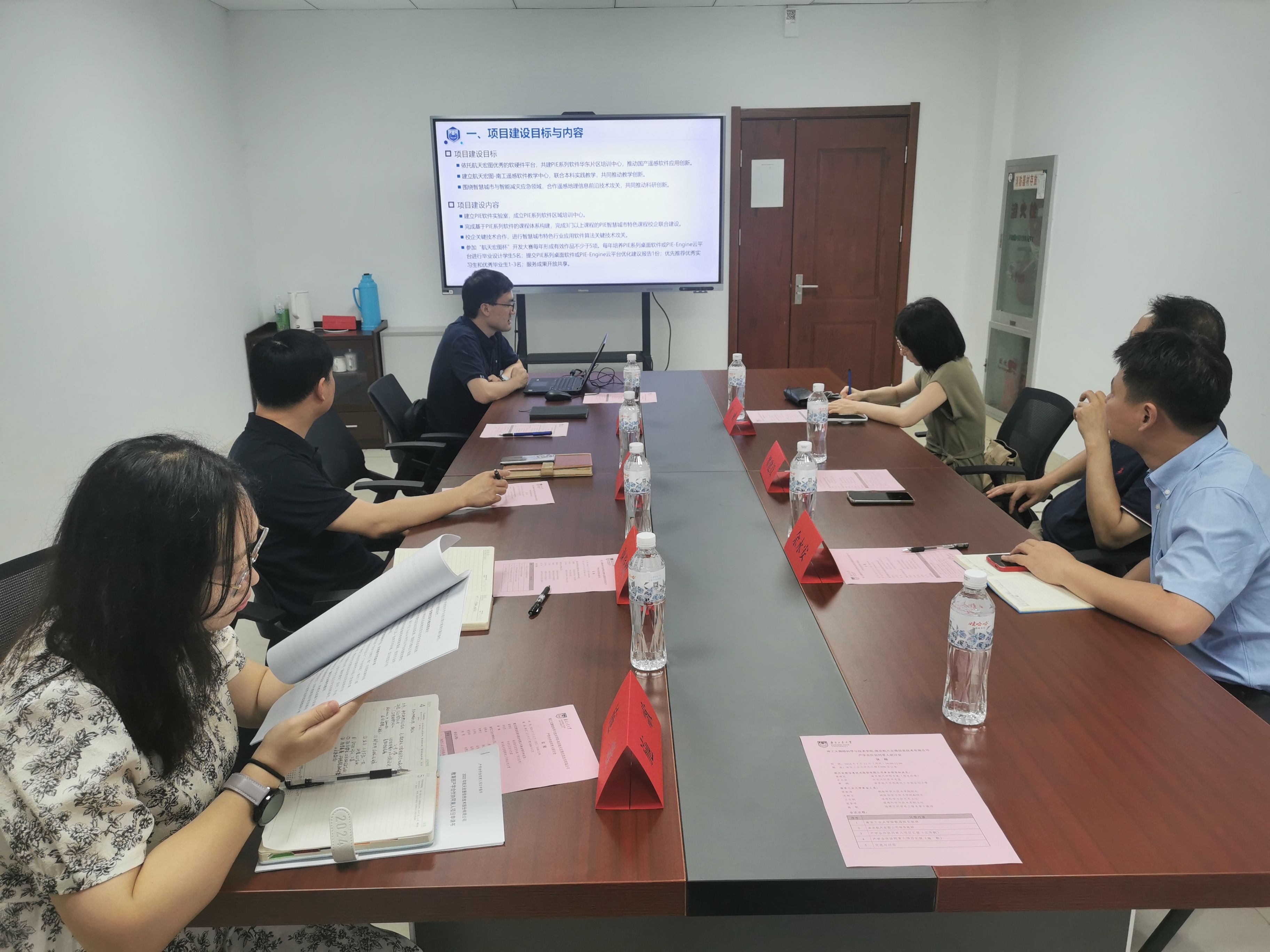 徐敬海院长首先对南京航天宏图信息技术有限公司各位领导的到来表示热烈欢迎。翟建设和余永安总监对南京航天宏图信息技术有限公司的产业现状和未来规划做了简要介绍。