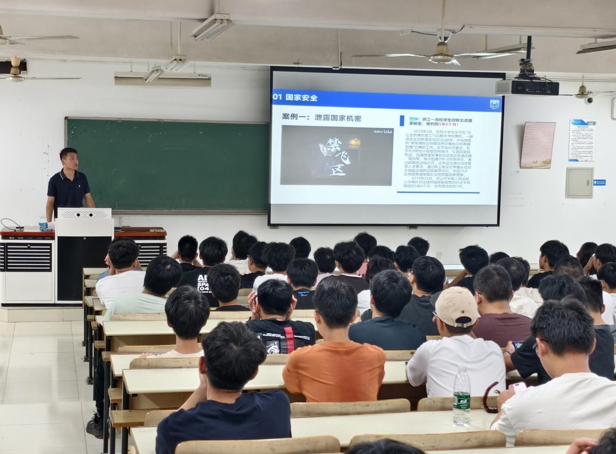 周子皓老师通过宣传安全知识,深入分析典型安全事故案例,为新生们上了一堂生动而深刻的安全教育课。他首先从泄露国家机密、宣扬暴恐主义等方面介绍威胁国家安全的犯罪行为,号召大家要树立总体国家安全观;又通过列举多种电信诈骗的骗术来提高同学们的反电诈意识;最后强调了保障校内交通安全与消防安全的注意事项。周老师以一个个鲜活的实际案例为蓝本,深入浅出地阐释了各种安全隐患及其应对之策。