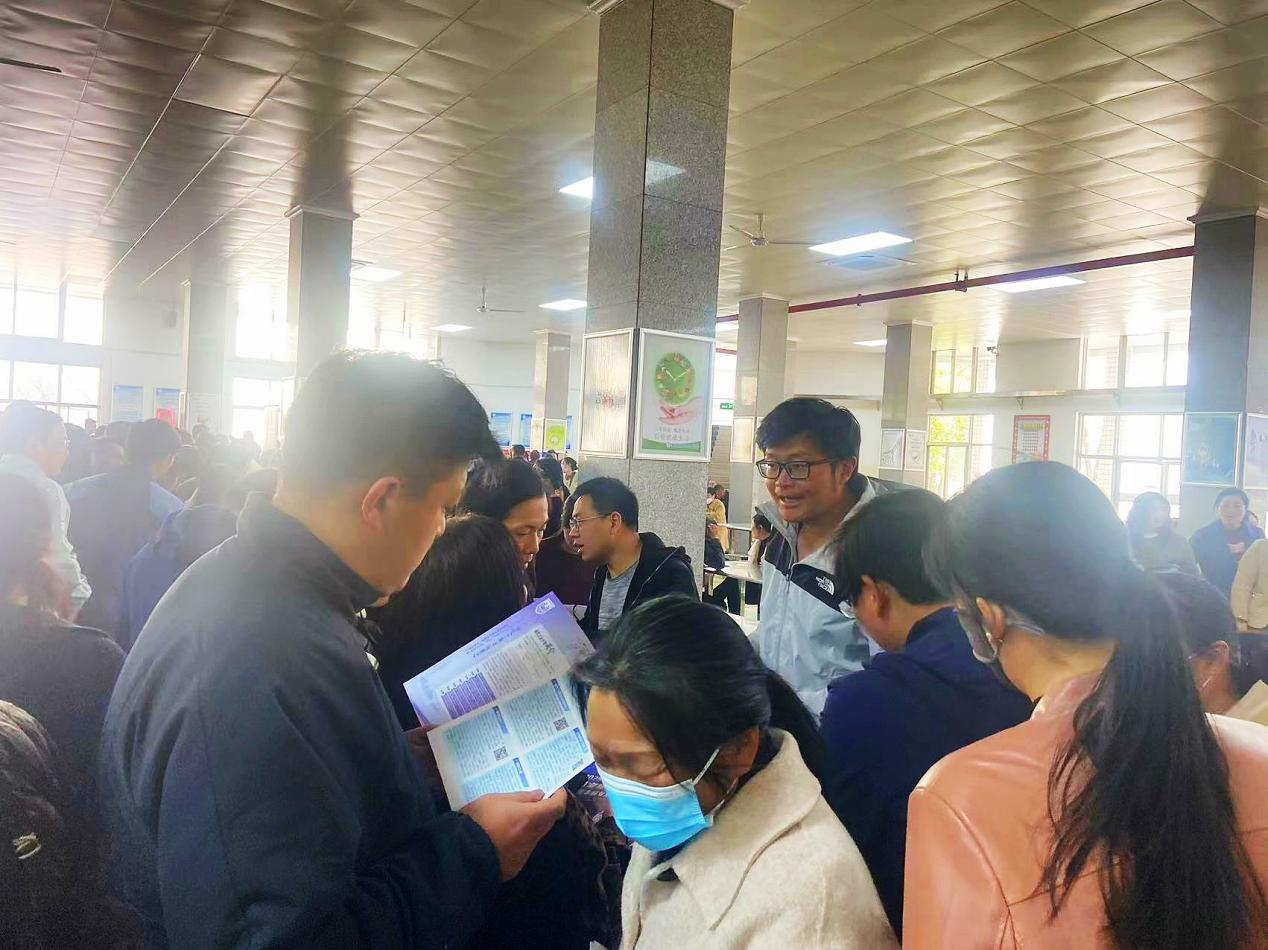 宣讲现场,考生和家长踊跃参与,我院工作组现场发放招生宣传材料,重点介绍了我校的办学历史、办学理念、优势学科、师资力量、就业前景及奖助政策,并详细解答了家长和考生对综合评价录取、历年分数线及省内排名等问题的疑问,帮助现场家长和学生全面了解学校优势和专业特色。