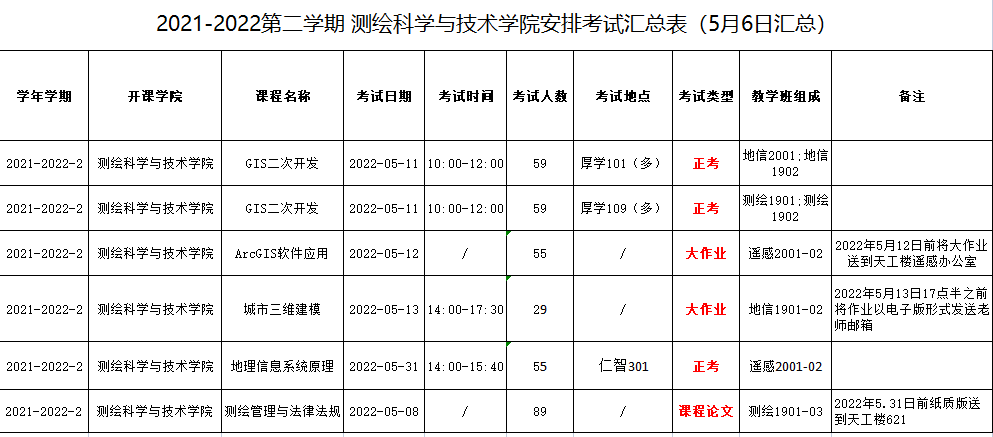 2021-2022学年第二学期yL23411永利官网登录考试安排汇总表(5月6日汇总)