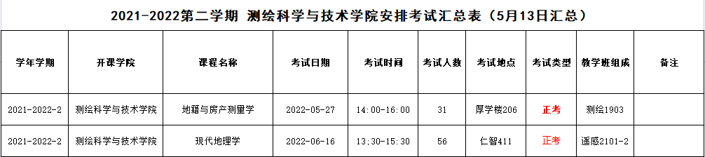 2021-2022学年第二学期yL23411永利官网登录考试安排汇总表(5月13日汇总)
