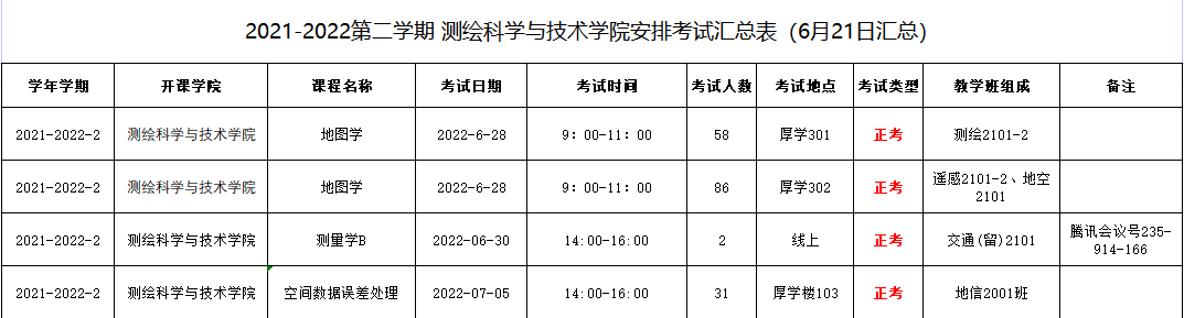2021-2022学年第二学期yL23411永利官网登录考试安排汇总表(6月21日汇总)