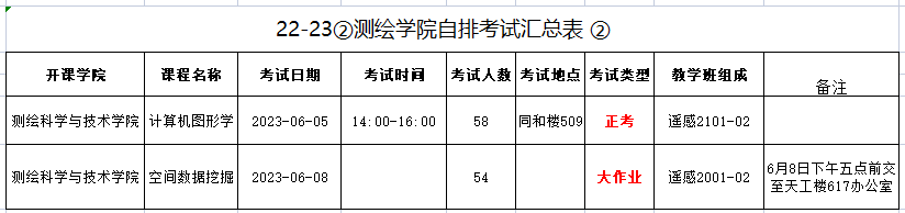 2022-2023学年第二学期yL23411永利官网登录安排考试汇总表