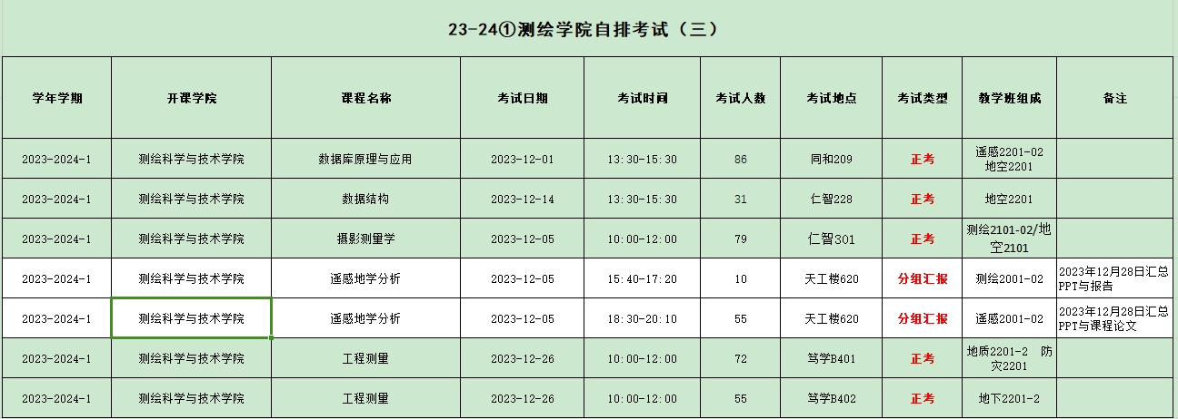 2023-2024第一学期yL23411永利官网登录考试安排汇总表(3)