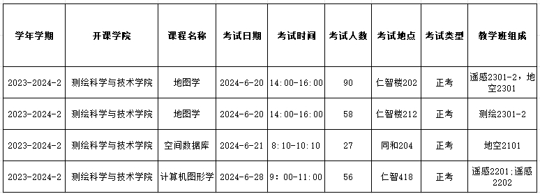 2023-2024学年第2学期yL23411永利官网登录自排考试信息汇总表(2)
