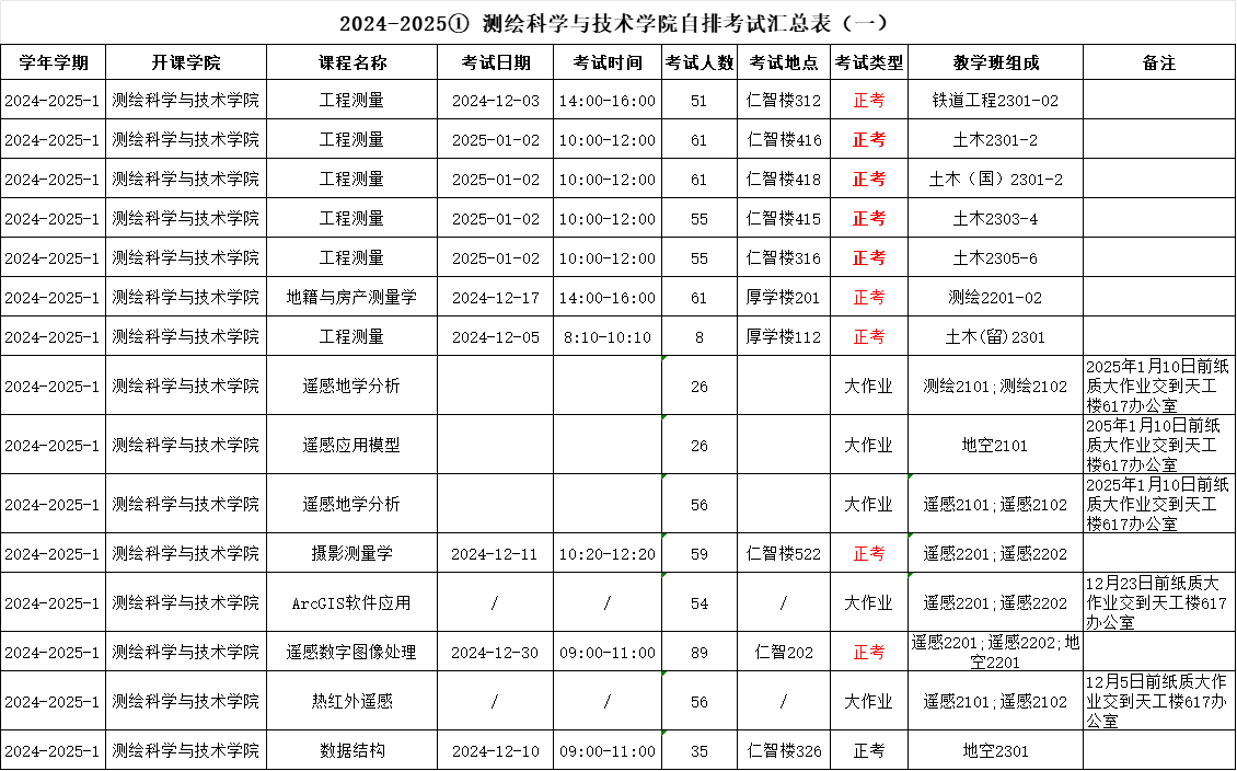 yL23411永利官网登录2024-2025学年第1学期自排考试安排表(1)