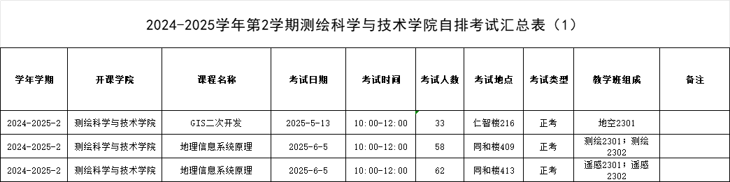 2024-2025学年第2学期yL23411永利官网登录自排考试汇总表(1)