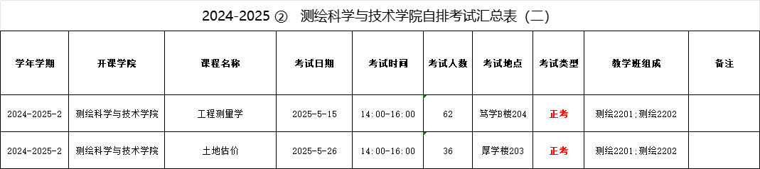 2024-2025学年第2学期yL23411永利官网登录自排考试汇总表(2)